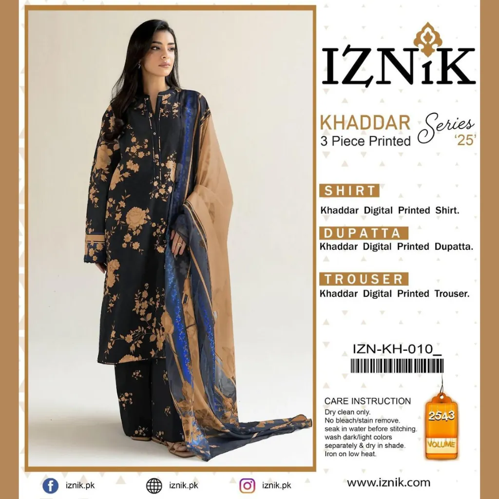 Elevate your winter wardrobe with Iznikβs Khaddar Printed Unstitched 3 Piece Collection. Crafted with premium quality khaddar, this ensemble blends warmth, comfort, and timeless elegance. Featuring a beautifully printed shirt, matching trouser, and coordinating dupatta, it is the perfect choice for everyday wear and seasonal gatherings. Designed for the modern woman who values both style and practicality.