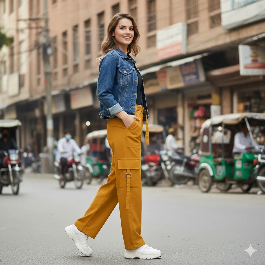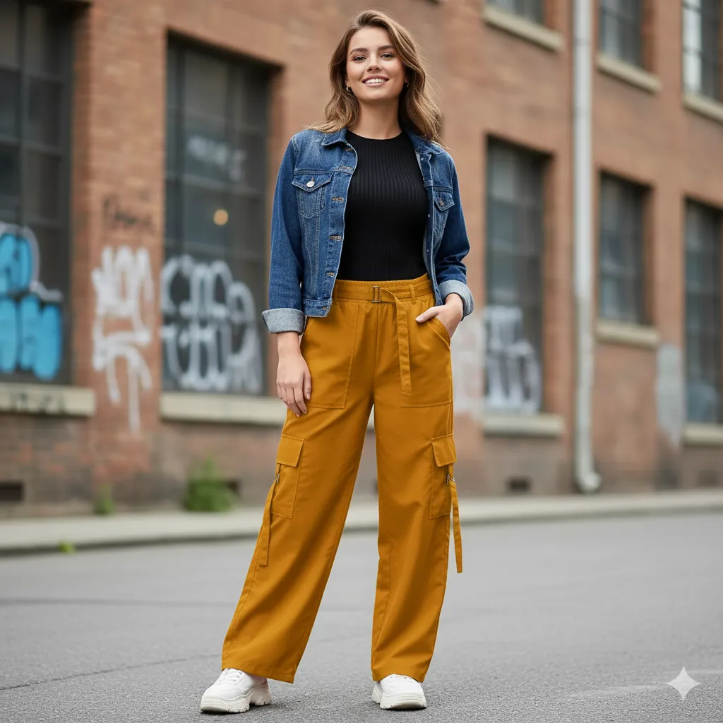 Stylish Yellow Cargo Trousers with Pockets & Belt - Premium Grip Fabric .Add a new and fashionable item to your wardrobe with these beautiful yellow (or mustard) cargo trousers. Crafted from premium grip fabric, they are not only extremely comfortable to wear but their lightweight and durable nature also makes them stand out. They feature stylish and practical cargo pockets that cater to your needs. Additionally, an adjustable belt is included to enhance your fit and add a stylish detail.