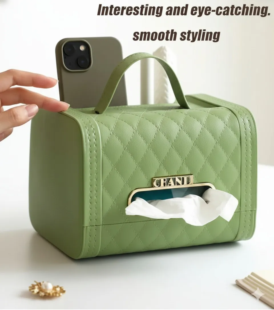 More than just a tissue dispenser, its innovative design includes a clever storage function on top, ideal for organizing small essentials like TV remotes, mobile phones, pens, or cosmetics. With dimensions of 19 x 14.5 x 18.5 cm, it boasts a large capacity, accommodating most standard tissue sizes while maintaining a sleek profile. Available in two versatile colors: a refreshing Green and a classic Cream/Beige, this SWICO tissue box is designed to enhance both your decor and your daily convenience. Keep your spaces tidy and stylish with this premium, multi-functional accessory.