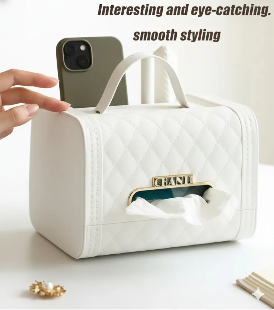 SWICO Modern Quilted Tissue Box Holder with Storage | Cosmetic Organizer | Chic
