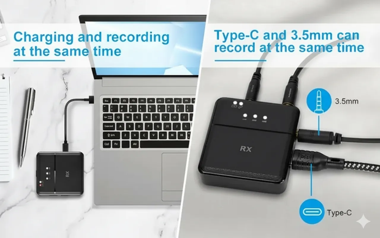 The Dual Wireless Lavalier Microphone System with Type-C Receiver is the ideal, professional audio solution for mobile content creators, vloggers, and interviewers. This all-in-one kit includes two ultra-compact clip-on transmitters (TX) and a plug-and-play USB-C receiver (RX), all conveniently housed in a portable charging case.