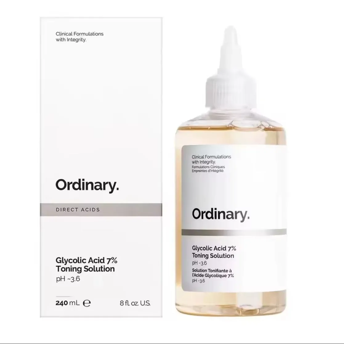 Discover radiant, smoother skin with The Ordinary's Glycolic Acid 7% Toning Solution. This powerful exfoliating toner is formulated with 7% glycolic acid, an alpha hydroxy acid (AHA), to gently but effectively slough off dead skin cells, revealing a brighter and more even complexion. The formula also includes a Tasmanian Pepperberry derivative to help reduce irritation associated with acid use, along with ginseng root and aloe vera to soothe and calm the skin. This toner is designed to target textural irregularities, dullness, and uneven skin tone, promoting a healthy-looking glow. It's an essential step in your skincare routine to prepare your skin for subsequent serums and moisturizers. Ideal for all skin types, this toner helps you achieve visibly clearer, smoother, and more refined