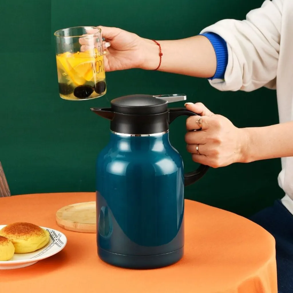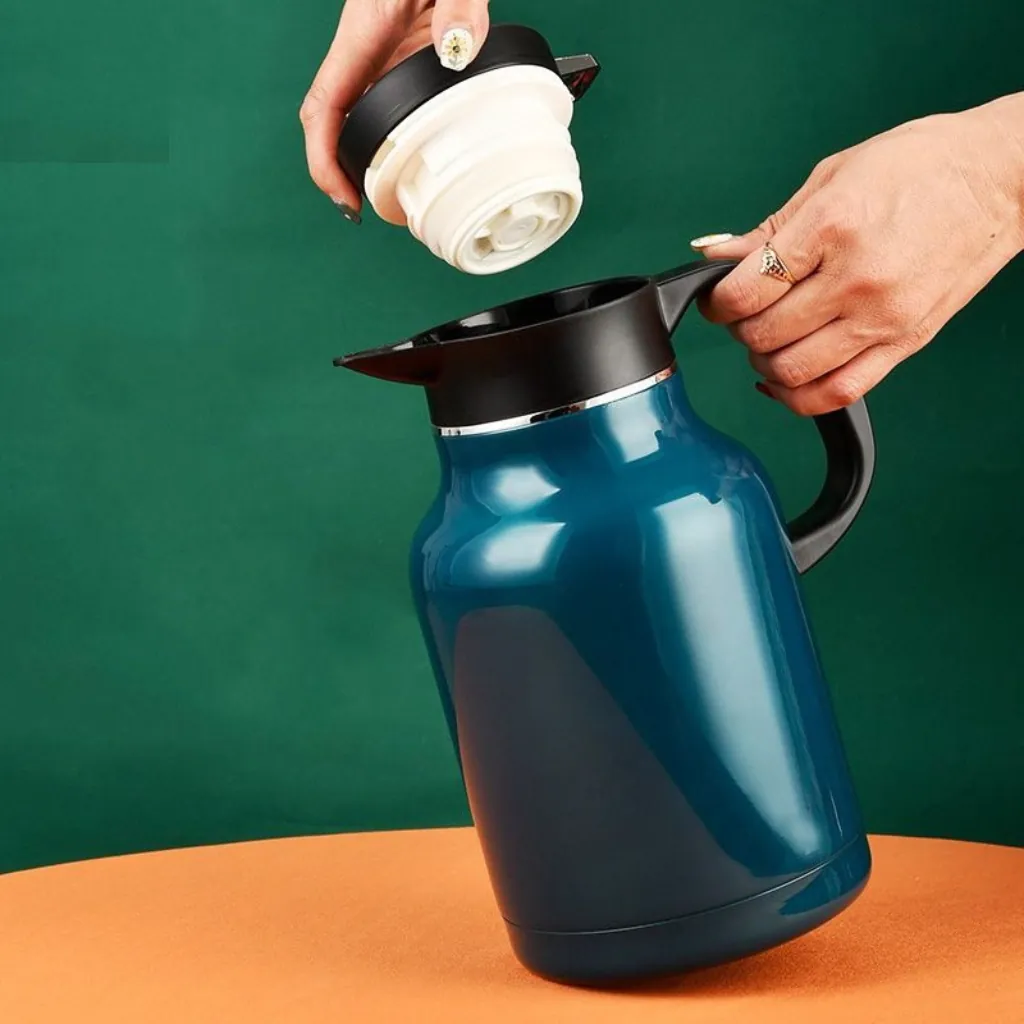 Its vacuum insulated double-wall structure prevents heat transfer, ensuring your tea, coffee, milk, or water stays fresh and at the perfect temperature. The leak-proof lid and sturdy handle make it ideal for travel, home use, picnics, and offices.