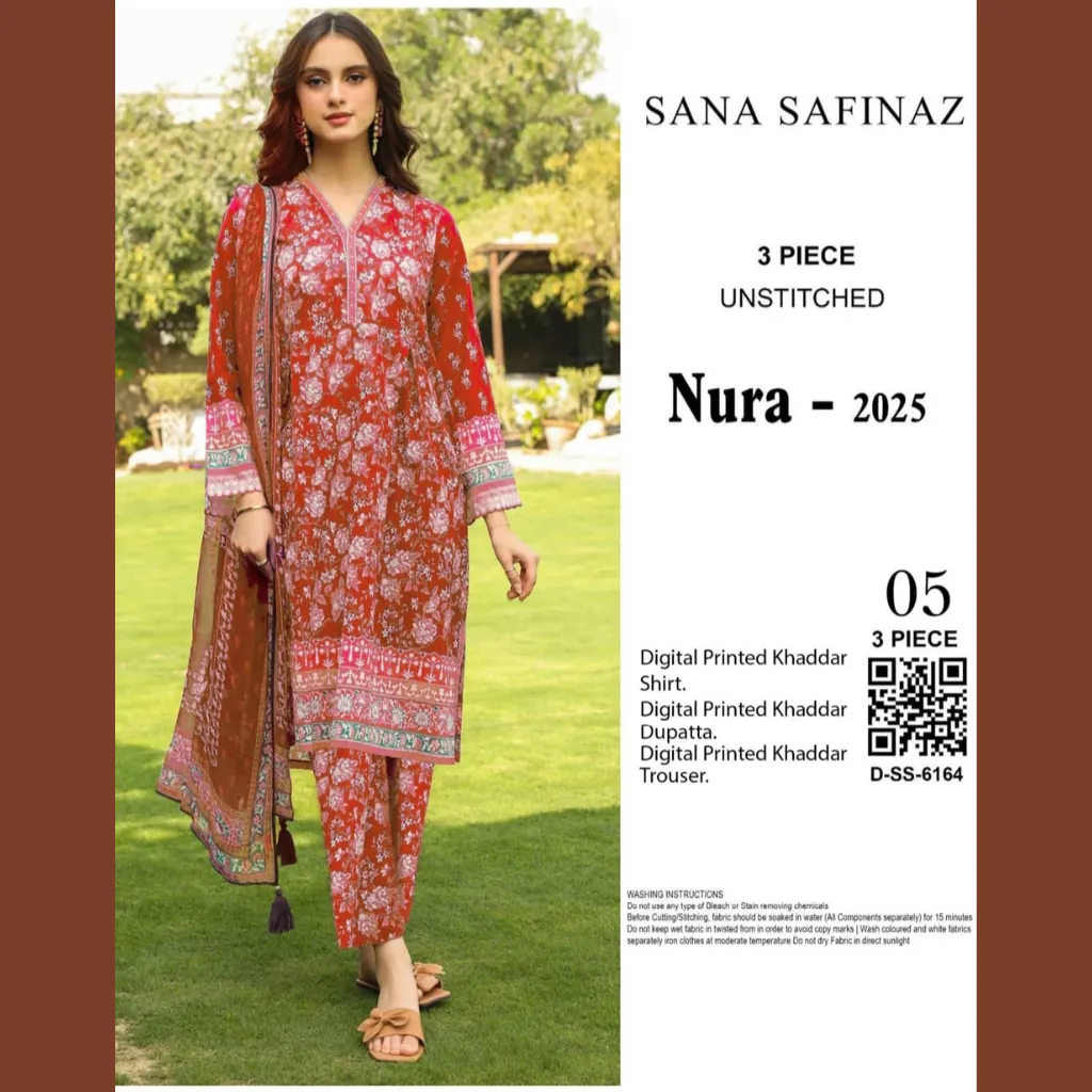 Discover the perfect blend of comfort and sophistication with Sana Safinaz Khaddar Printed Unstitched 3 Piece Collection. Designed with premium khaddar fabric, this outfit ensures warmth and style during the winter season. The beautifully printed shirt, matching trouser, and coordinating dupatta make it a versatile choice for casual gatherings and everyday elegance. A timeless addition to your seasonal wardrobe.