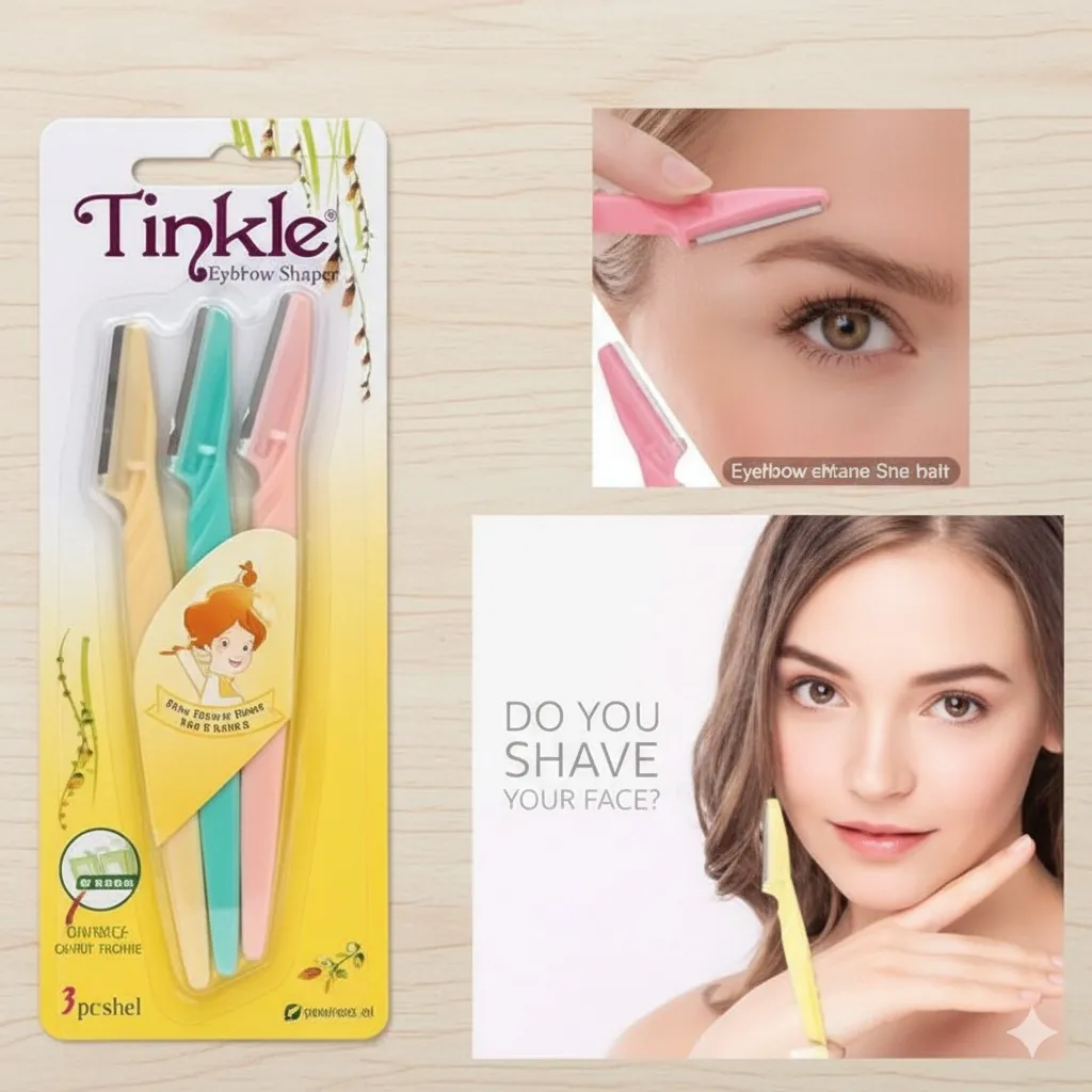 The Tinkle Eyebrow Razor 3 Pcs Set is your essential multi-purpose grooming tool for quick, gentle, and effective hair removal at home. This pack includes three vibrant, assorted razors (typically pink, blue, and yellow) designed for ultimate precision and control.