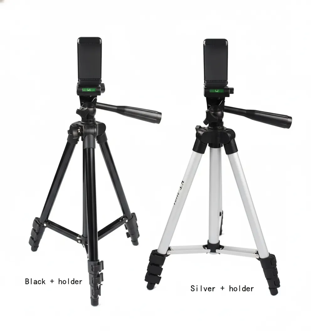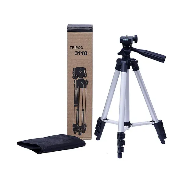 The Tripod Camera Stand 3110 is a versatile, travel-friendly support solution ideal for photography and videography on the go. Crafted from durable aluminum alloy with rubber feet and a sturdy 3-way pan head offering 360° horizontal rotation and 90° vertical tilt, it enables flexible shooting angles whether you're using a DSLR, compact camera, camcorder or smartphone mount. The legs extend in four sections and lock quickly with flip-leg locks or similar mechanism, allowing you to raise the tripod from a folded height of around 35 cm up to a maximum working height of approximately 105 cm. A built-in bubble level ensures that your setup stays perfectly level even on uneven terrain. With a standard ¼-inch mount screw and a quick-release plate (on many variants), it’s compatible with most cameras and mounts.