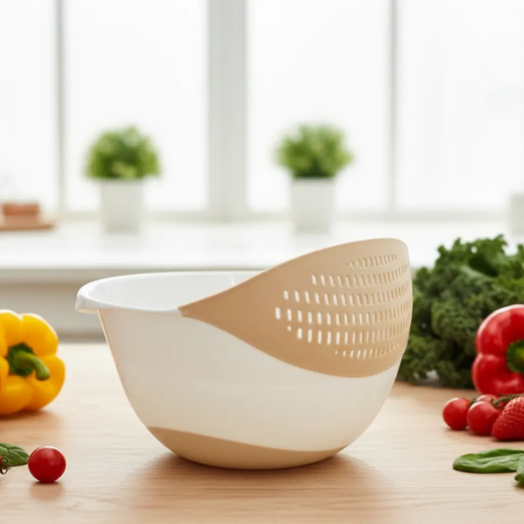 Made from high-quality, food-grade plastic, this washer strainer bowl is safe for daily kitchen use. Its durable yet lightweight construction ensures long-term reliability, while the two-color combination adds a modern and attractive look to your kitchen. The built-in strainer holes provide smooth and quick water drainage, helping save time during food preparation. Ideal for everyday home kitchens as well as restaurants and food prep areas.