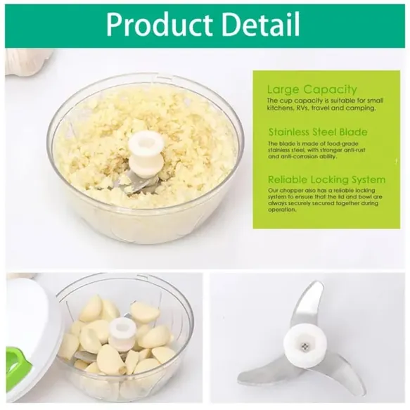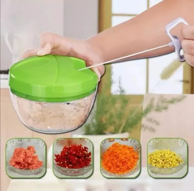 Ultimate 3-Blade Spin Cutter - Quick and Efficient Kitchen Chopper for Effortless Meal Prep.Sick of hard chopping and crying over onions? Meet the Ultimate 3-Blade Spin Cutter – your simple, handy kitchen helper for fast food prep! This cool green chopper has three super-sharp stainless steel blades that spin with every easy pull of the cord, giving you even dices, minces, and chops in seconds. It’s great for making fresh salsa, guacamole, pesto, or salads with no effort.
