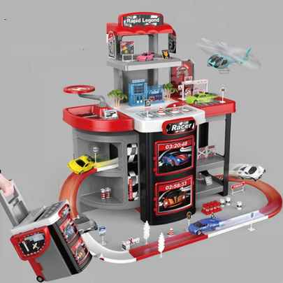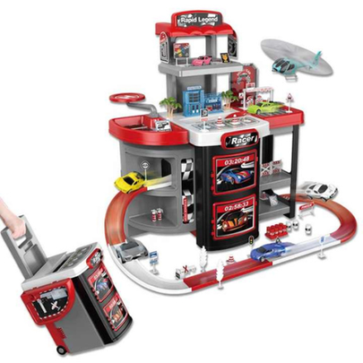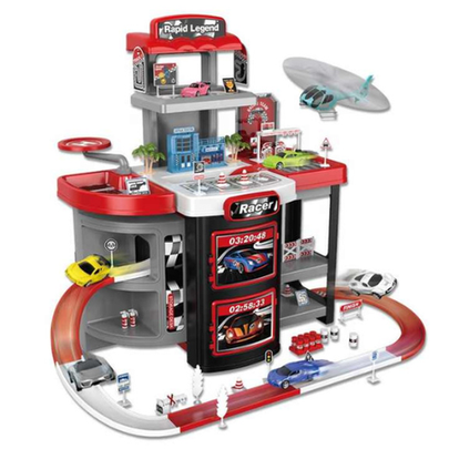 The Rapid Legend Racing Garage Playset is the perfect gift for young car lovers and future race champions! Designed for imaginative and interactive play, this playset features a 3-level parking garage with exciting spiral ramps, a realistic race track, and eye-catching details like traffic signs, barriers, fuel pumps, and finish lines.