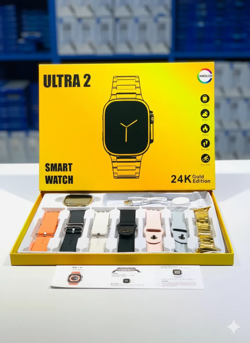 Introducing the Luxurious Ultra 2 24K Gold Edition Smart Watch Multi-Accessory Bundle