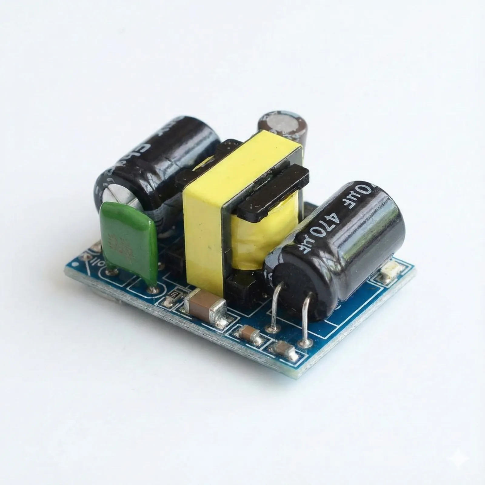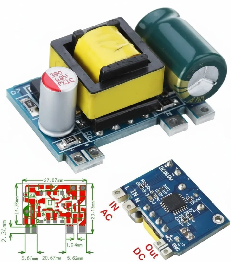 The Ultra-Compact Isolated AC-to-DC Buck Converter is a highly efficient and precise switch-mode power supply designed for embedded systems and space-constrained applications. With miniature dimensions of only 3 x 2 x 1.8 cm, this module effortlessly steps down AC line voltage (90V to 250V) to a regulated DC 12V (Β±0.2V) output. Its isolated design ensures safety and superior noise suppression, critical for sensitive electronics. Providing up to 450mA (5W) of output power with an impressive 80% efficiency, it's ideal for powering microcontrollers, sensors, relays, and small DC circuits. It also features a useful power indicator and robust protection against inrush current (20A).