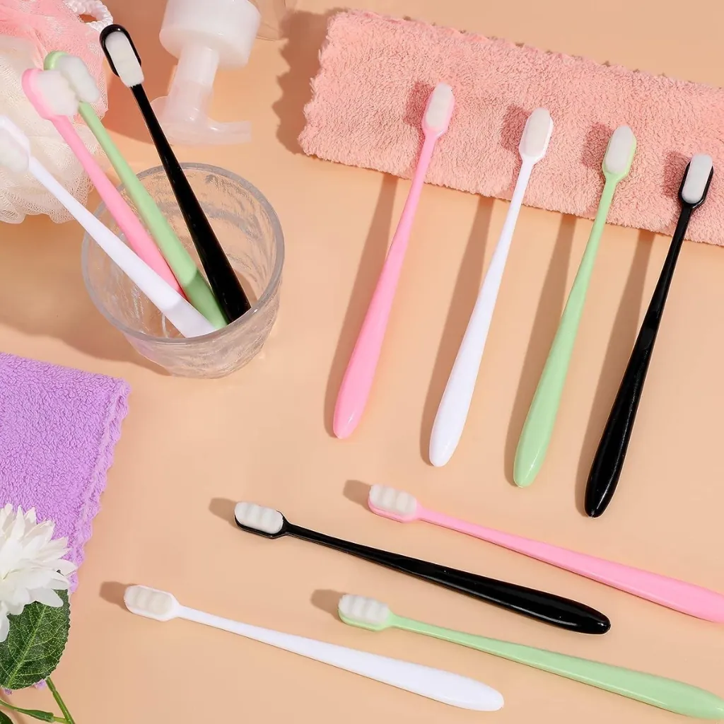 Experience a new level of clean and comfort with these Ultra-Fine Soft Bristle Toothbrushes. Designed with thousands of incredibly dense, micro-fine bristles, these toothbrushes provide a remarkably gentle yet effective cleaning experience. Perfect for individuals with sensitive gums, receding gums, or delicate teeth, the ultra-soft bristles meticulously reach into every crevice, along the gumline, and between teeth, removing plaque and food particles without irritation. The ergonomic handle ensures a comfortable grip, making your daily brushing routine a pleasure. Available in a range of aesthetic colors (green, white, black, pink), these toothbrushes combine superior oral care with modern design. Elevate your dental hygiene routine and achieve a healthier, cleaner smile