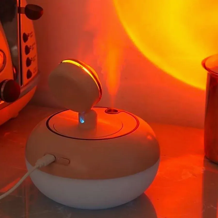 Transform your space with this Unique Table Sunset Lamp with Humidifier, designed to elevate your room with soothing sunset hues and refreshing mist. This multifunctional device works as both a sunset projection lamp and a mini humidifier, creating a peaceful and visually stunning environment.