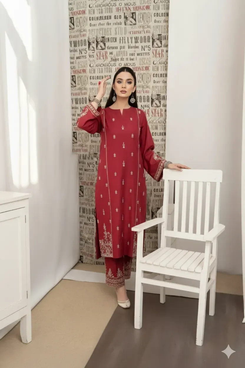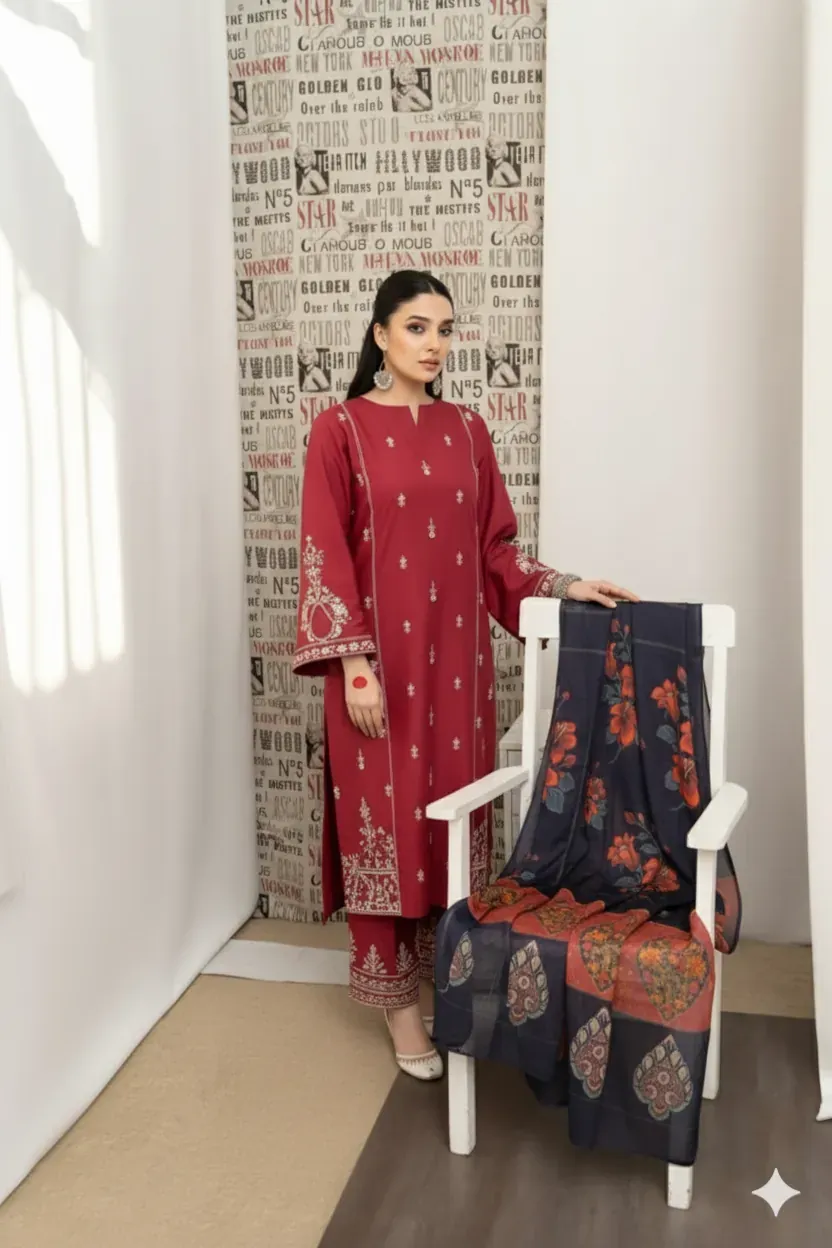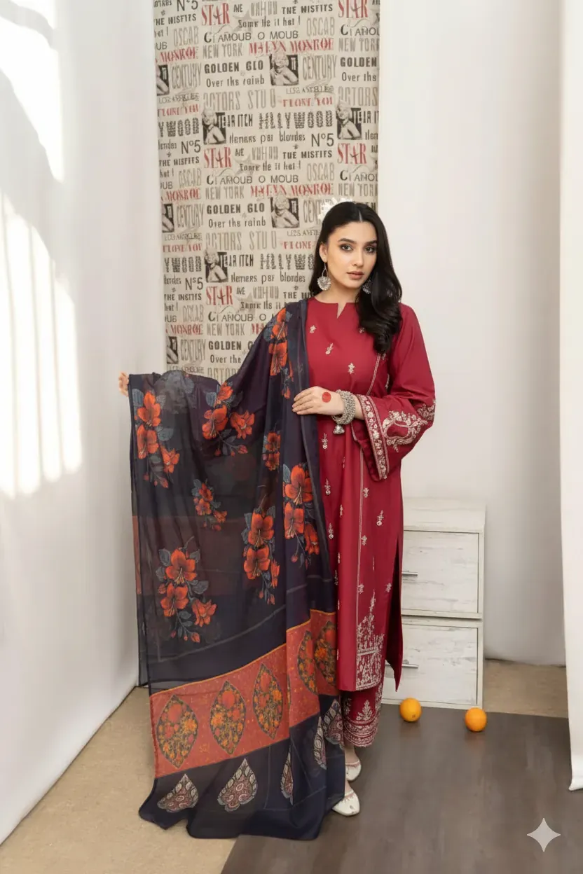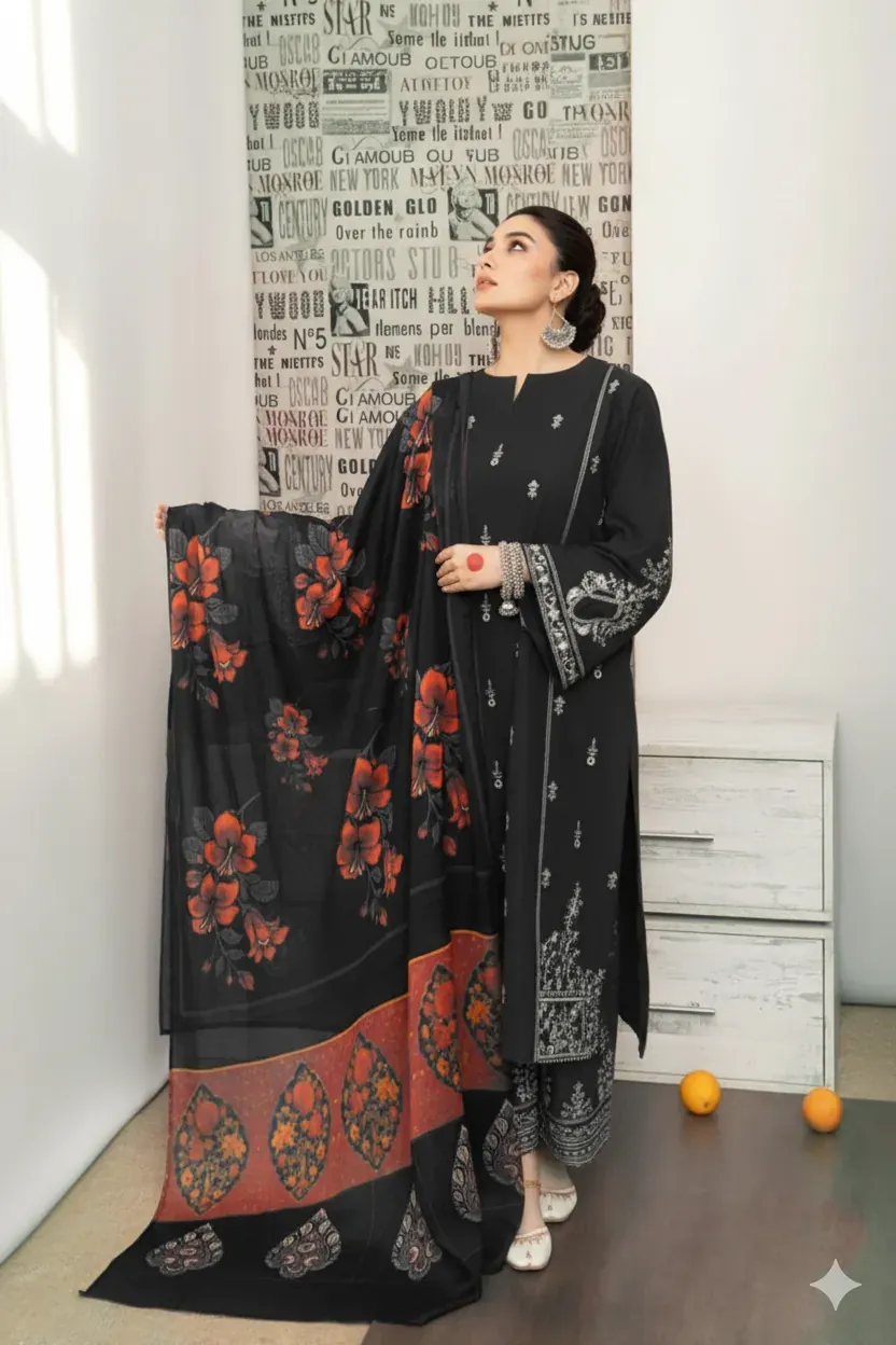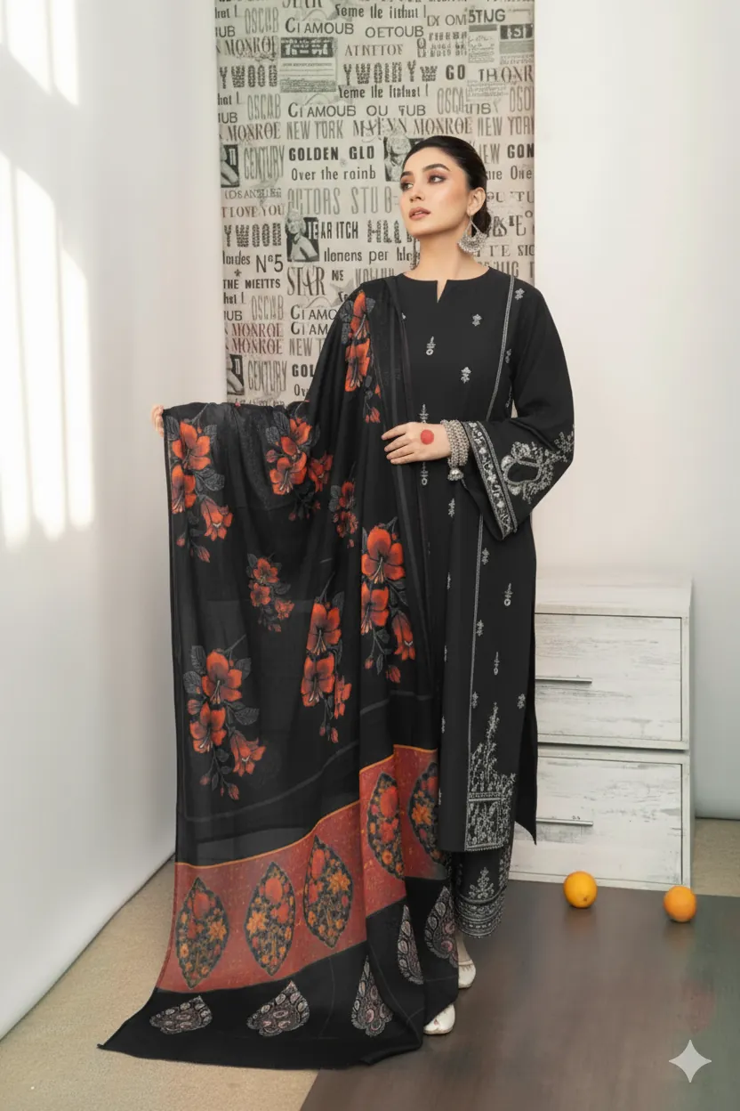URGE Artical-10 Dhanak Fabric Embroidered Suit with Digital Printed Shawl | Women's Ethnic Wear | Black & Maroon Options"