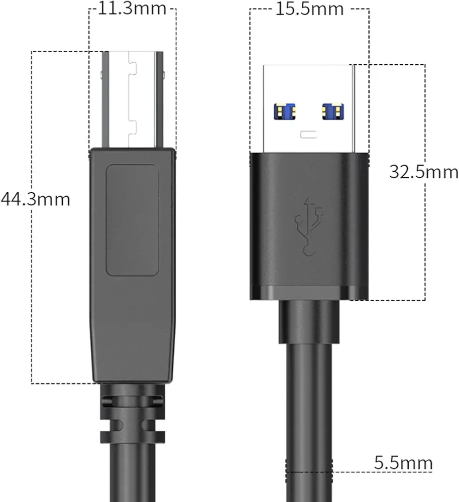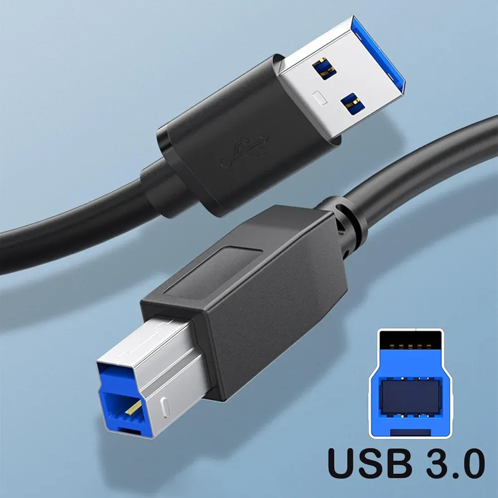 Upgrade your connectivity with this high-performance USB 3.0 Type A Male to Type B Male Cable. Designed for maximum efficiency, it delivers SuperSpeed data transfer rates up to 5 Gbps, drastically cutting down on file transfer times for large documents, HD videos, and backups. This cable is the perfect link between your PC, laptop, or host device (via the rectangular USB Type-A connector) and various peripherals such as USB 3.0 printers, scanners, external Blu-ray/hard drive enclosures, and docking stations (via the square USB Type-B connector). Constructed with high-quality, corrosion-resistant connectors and foil/braid shielding, it ensures optimal signal clarity and minimized data loss. It is fully backward-compatible with USB 2.0 Type A ports (at USB 2.0 speeds), making it a versatile and reliable choice for your modern workspace.