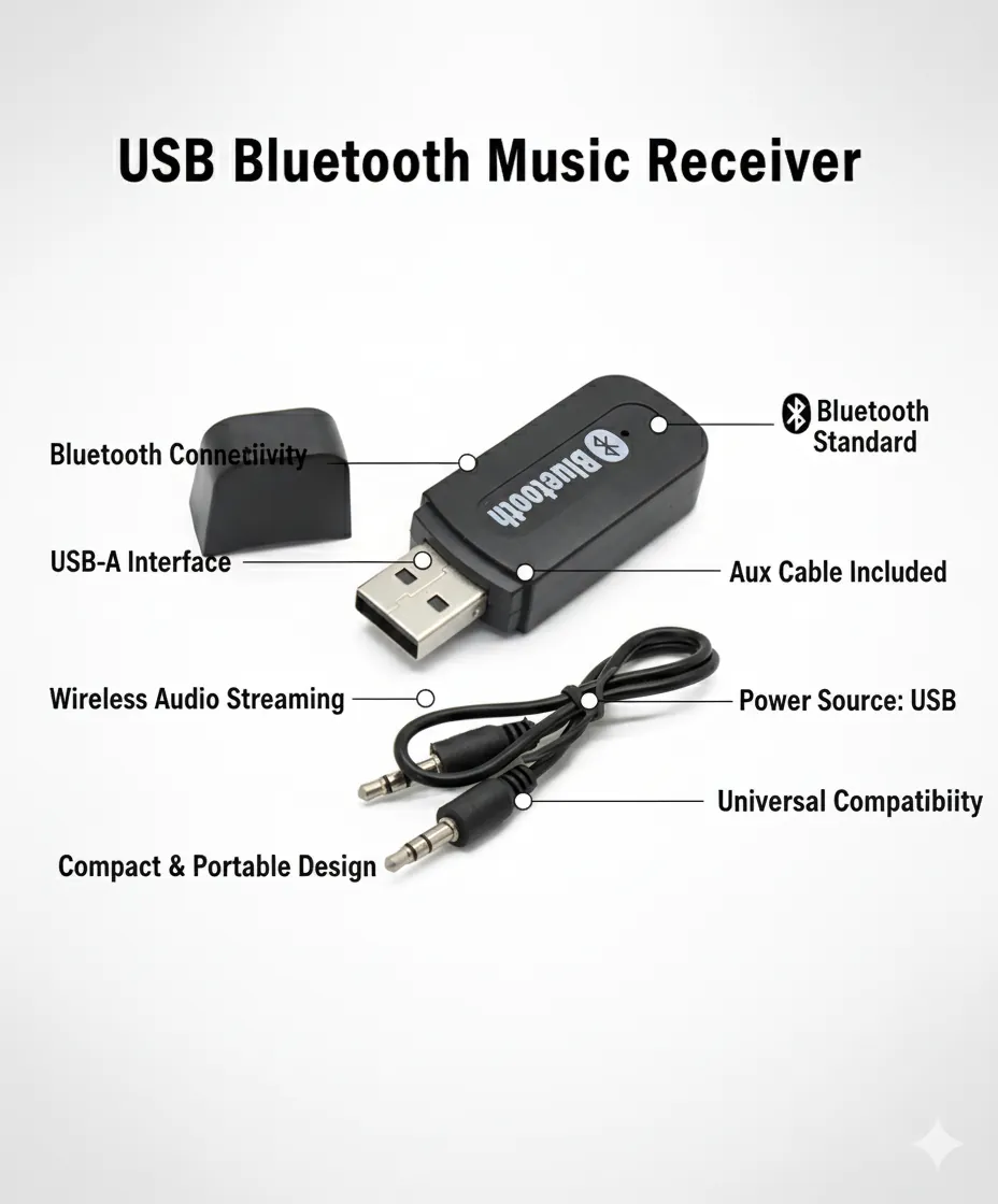 Experience true freedom in listening — wireless, effortless, and powerful with the USB Bluetooth Music Receiver.