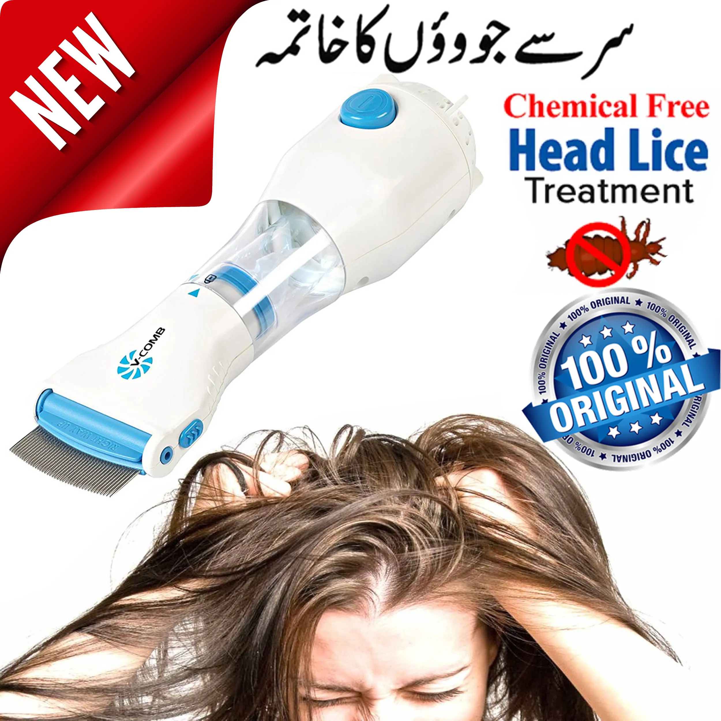 The V-Comb Steel Comb Vacuum Lice Eliminator is a revolutionary, chemical-free head lice treatment device designed to eliminate lice and their eggs safely and effectively.