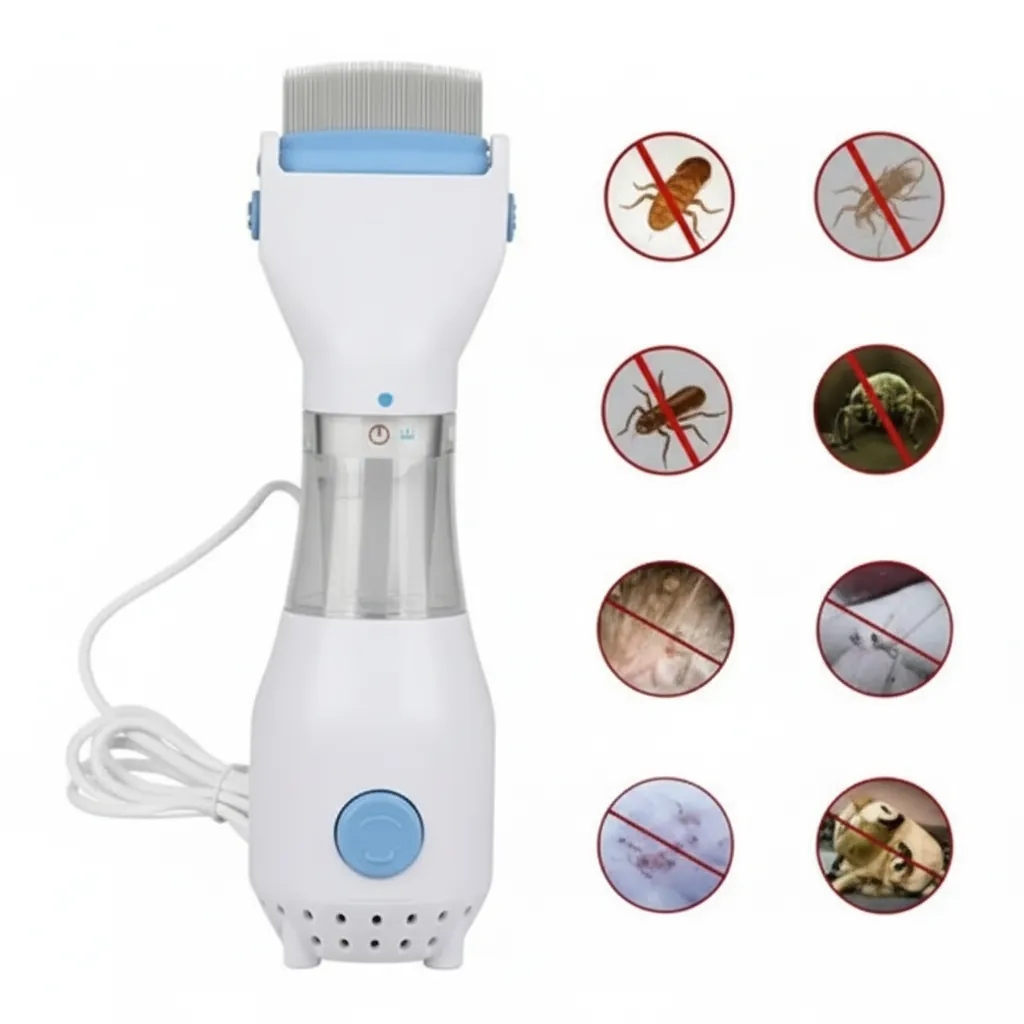 V-Comb Electric Lice Remover – Chemical-Free Vacuum Comb for Head Lice & Eggs.The V-Comb by Licetec is a smart, hygienic tool to fight head lice without any harmful chemicals or strong smells. It's like a regular comb but with built-in vacuum power that sucks up lice and their eggs as you brush through the hair. The special stainless steel teeth gently go through wet or dry hair, catching everything and pulling it into a see-through filter chamber where you can see what it removed. This makes it perfect for parents, kids, or anyone dealing with lice – it's painless, mess-free, and helps prevent future infestations by letting you check hair often. Just charge it up (for the rechargeable version), pop in a filter, turn it on, and comb section by section. After use, seal the filter and throw it away safely. It's gentle on the scalp, safe for all ages, and super easy to clean. Say goodbye to lice worries with this trusted, world-number-one lice comb!