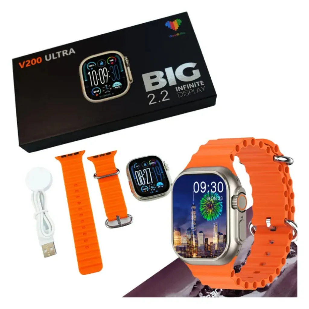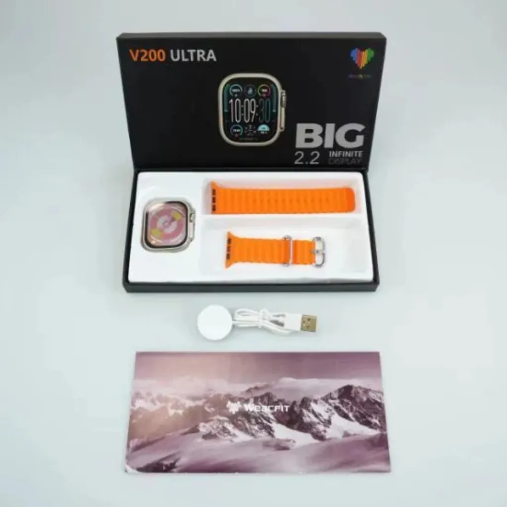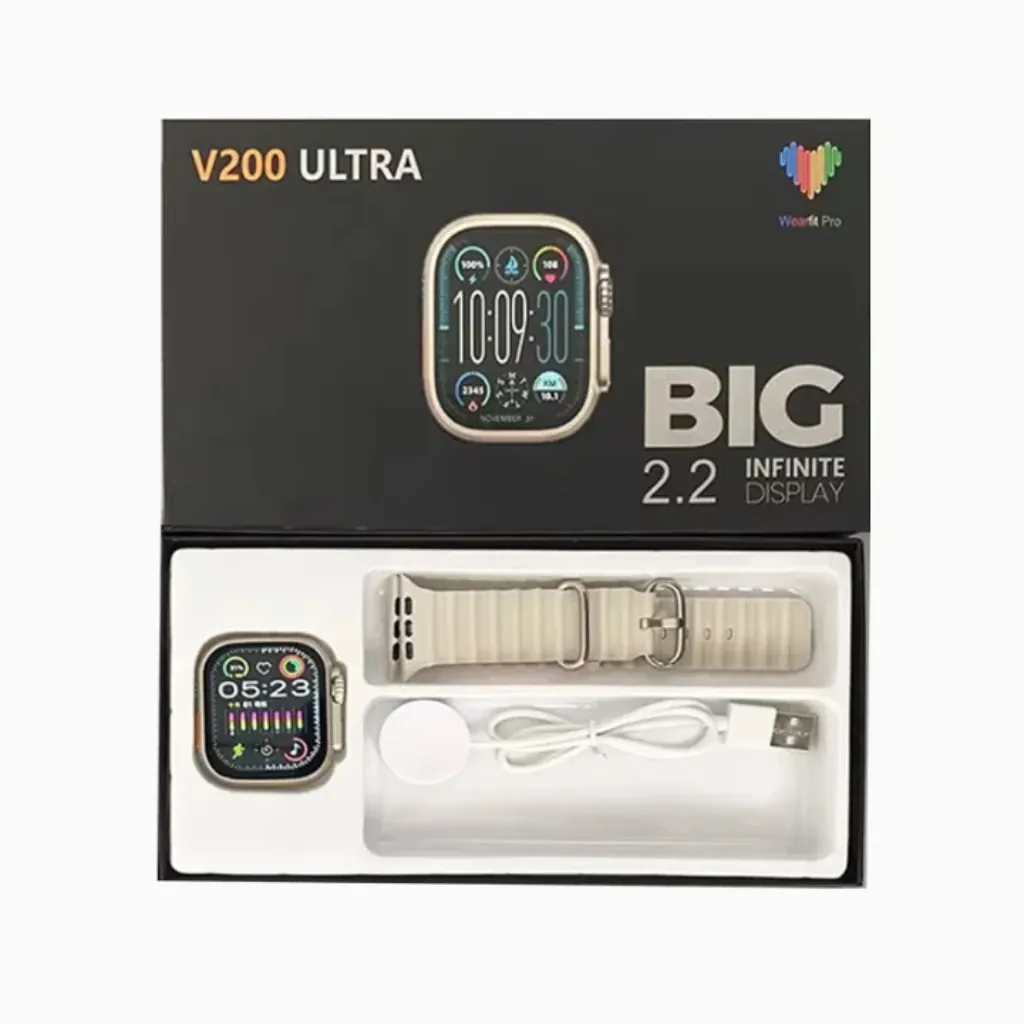 Experience the future of smart wearable technology with the V200 Ultra Smart Watch. Designed with a 2.2-inch ultra-clear HD display, this smartwatch delivers an immersive viewing experience and smooth touch performance.