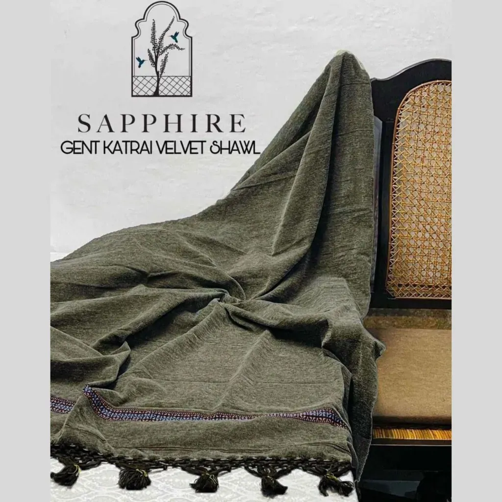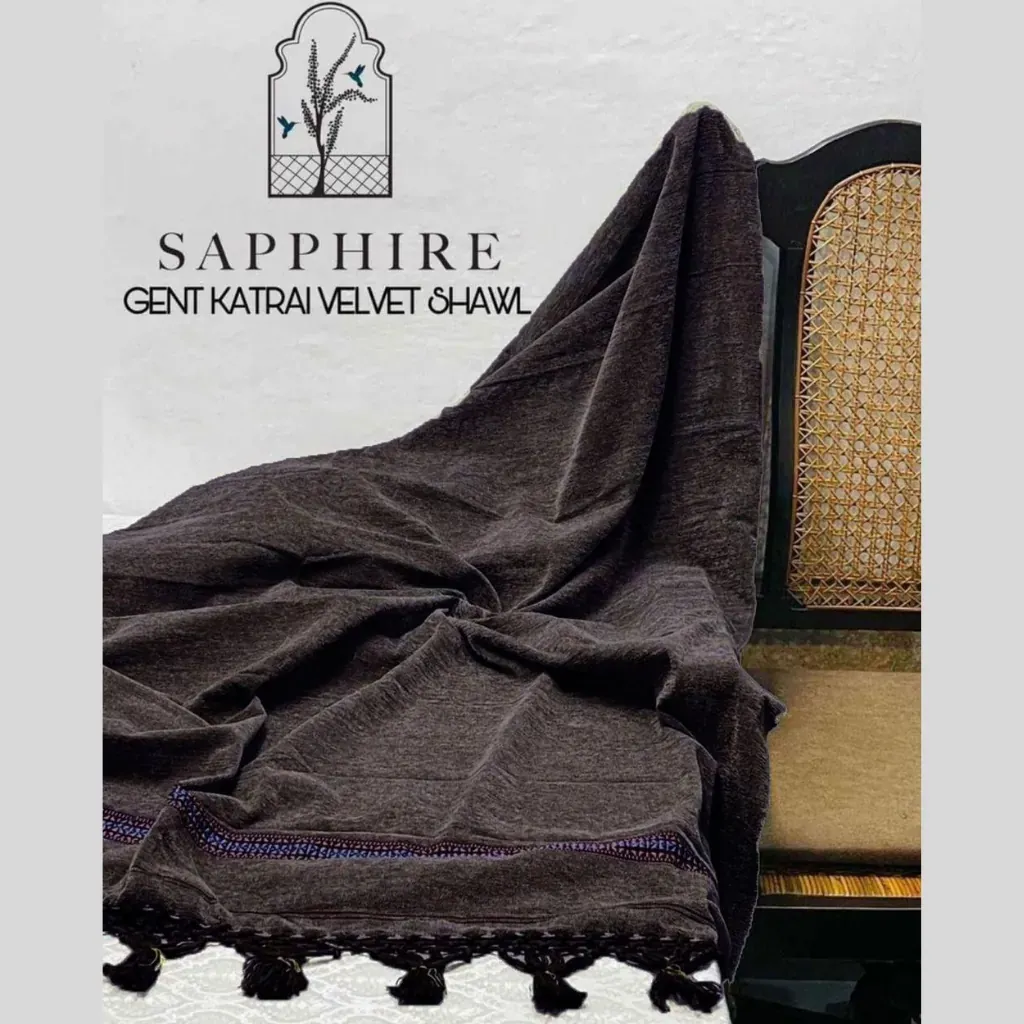 The tussels patti border work enhances its royal appeal, while the included sapphire bag makes it a perfect gift or a stylish addition to your wardrobe. With a length of 3 yards and width of 1.5 yards, this shawl provides full coverage, comfort, and a complete luxurious look.