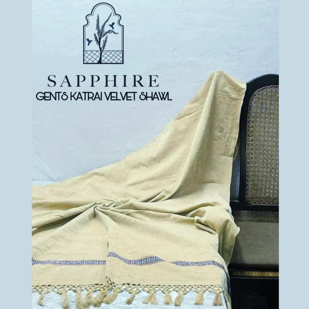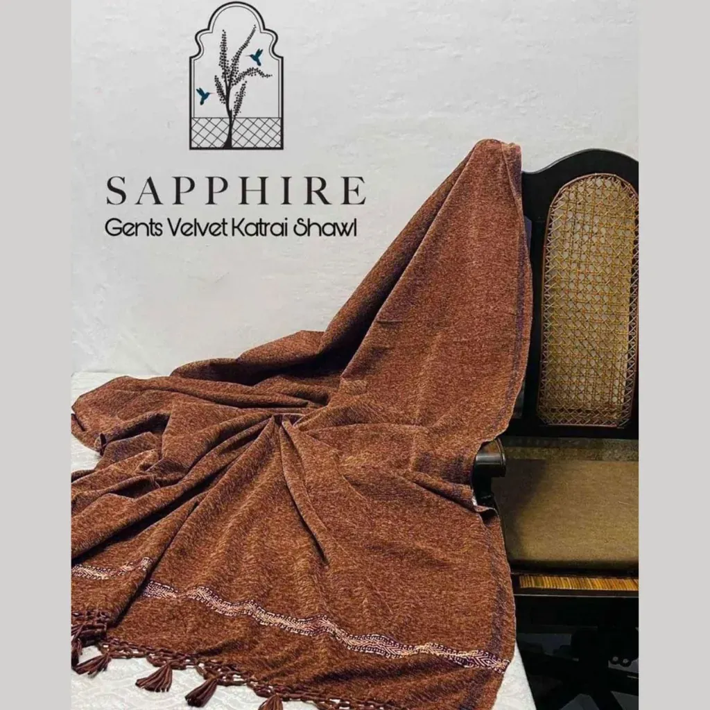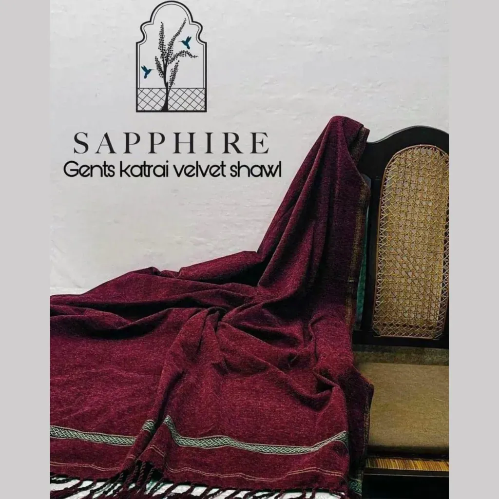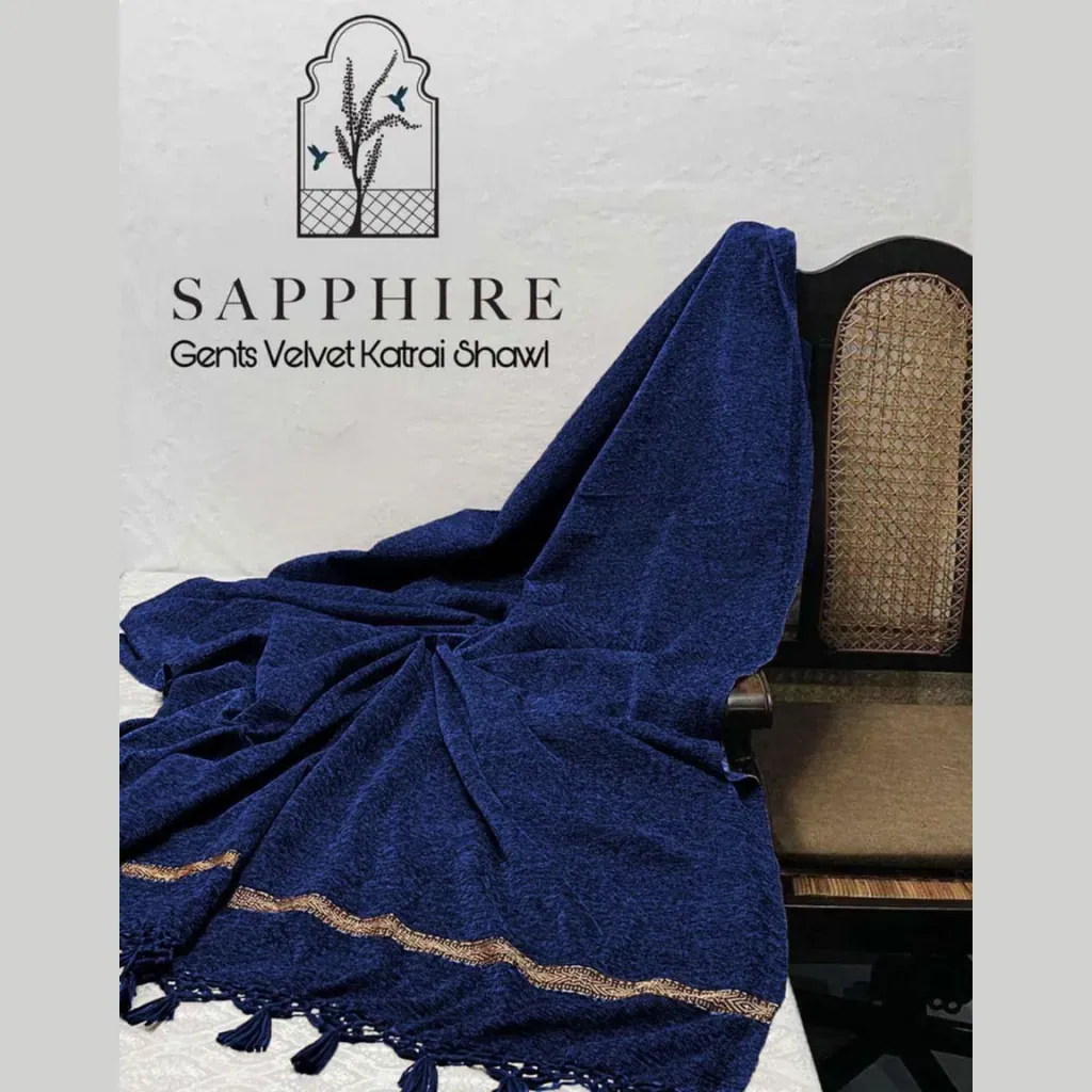 Velvet Shawl for Men – Winter Luxury Collection Premium Tussels Patti Border with Sapphire Bag