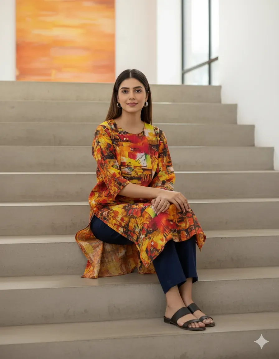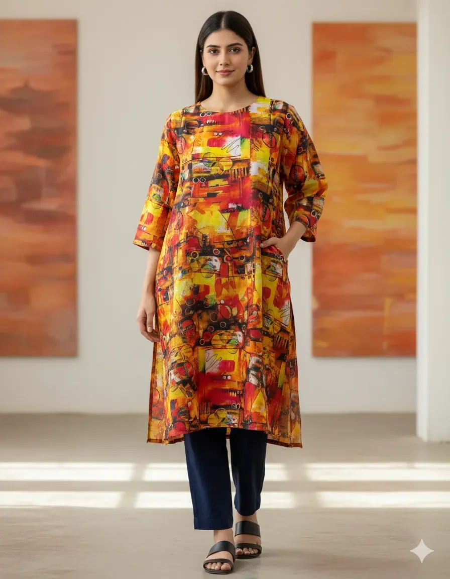 Vibrant Abstract Print Linen 2-Piece Unstitched Suit | Ready-to-Stitch Printed Shirt & Trousers | Lightweight & Comfortable