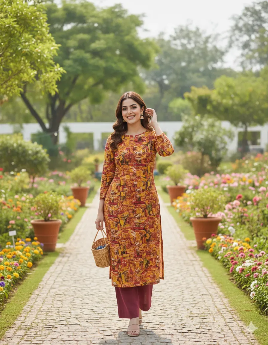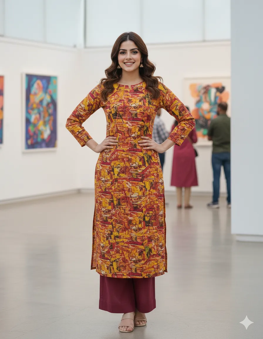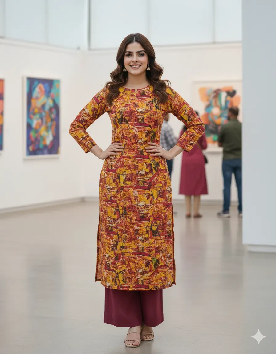 Make a statement with our eye-catching unstitched 2-piece linen suit. This set includes a beautifully designed shirt crafted from high-quality linen fabric, adorned with a dynamic abstract print in a striking palette of reds, yellows, and oranges. The modern and artistic pattern adds a unique flair to your ensemble.