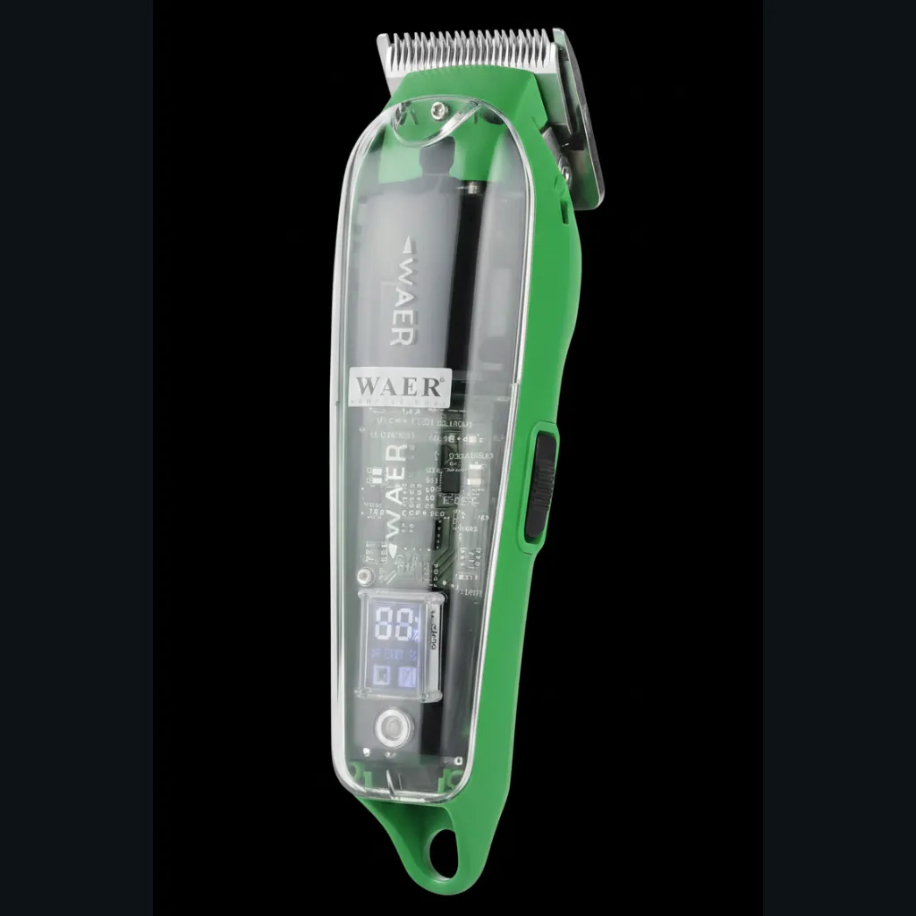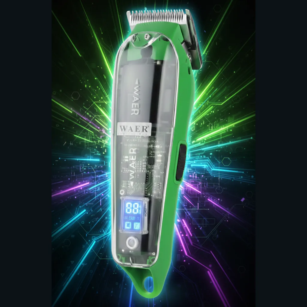 Designed with a rechargeable system and charging indicator, this clipper offers cordless convenience and reliable power. The strong motor provides up to 35% more power, ensuring consistent performance even on thick hair. With its ergonomic and stylish design, the WAER WA-1935 is perfect for professional barbers as well as personal grooming at home.
