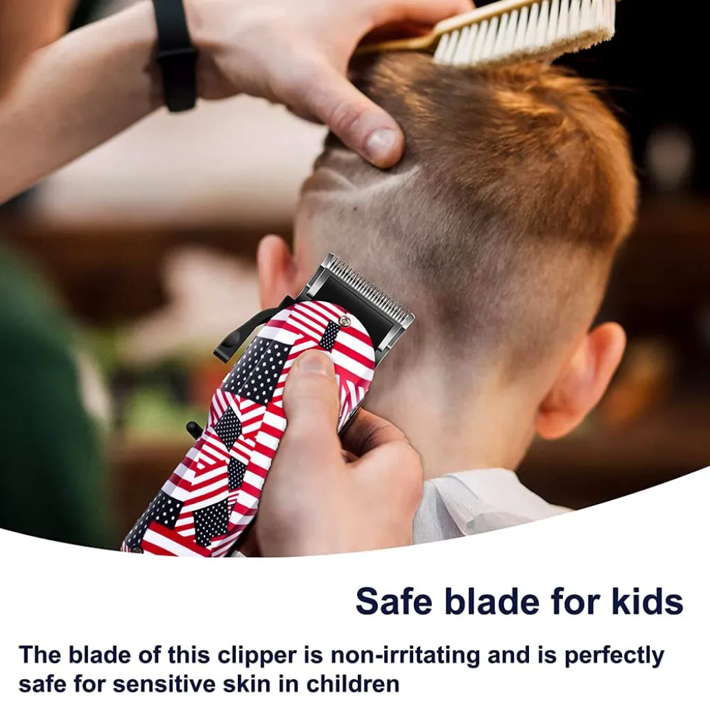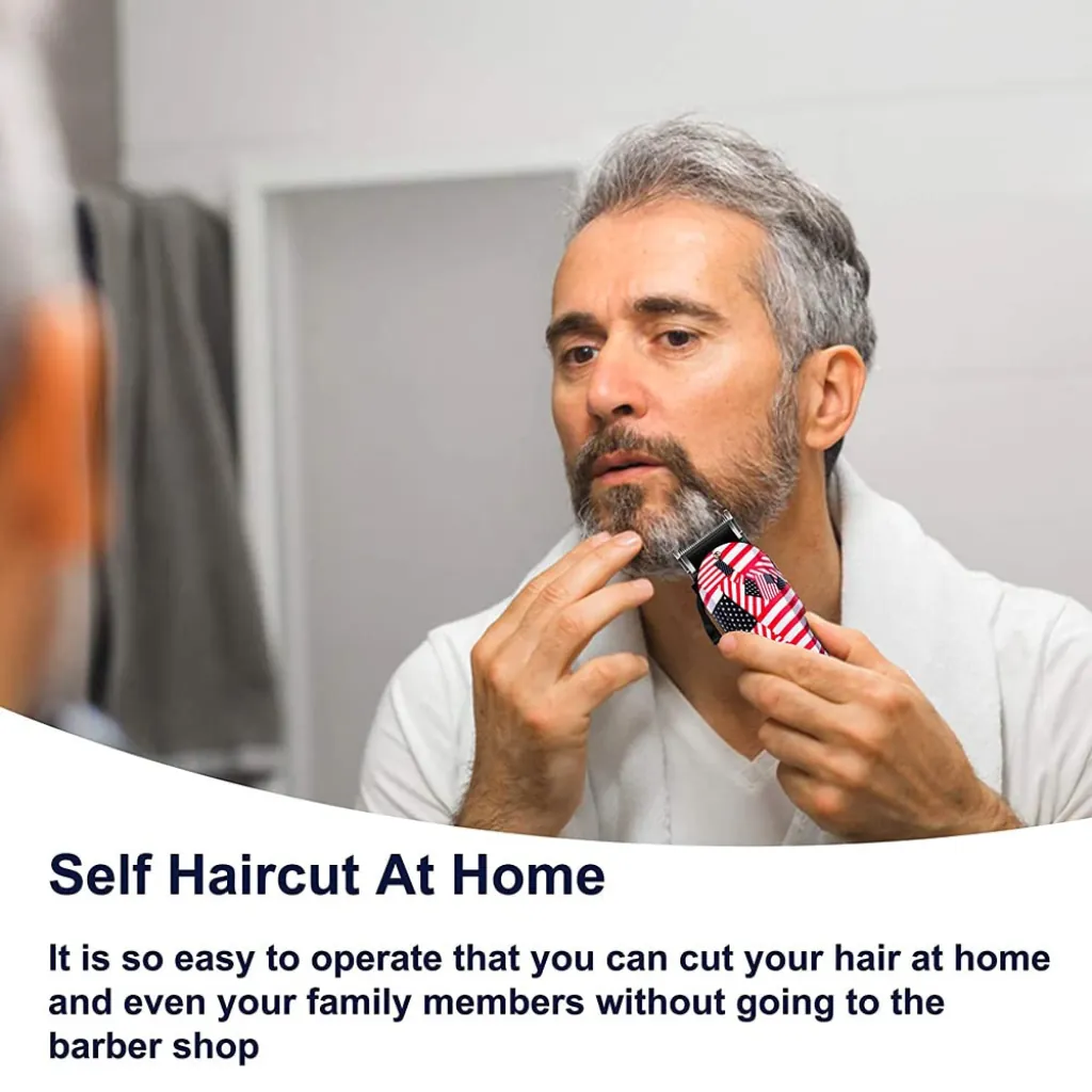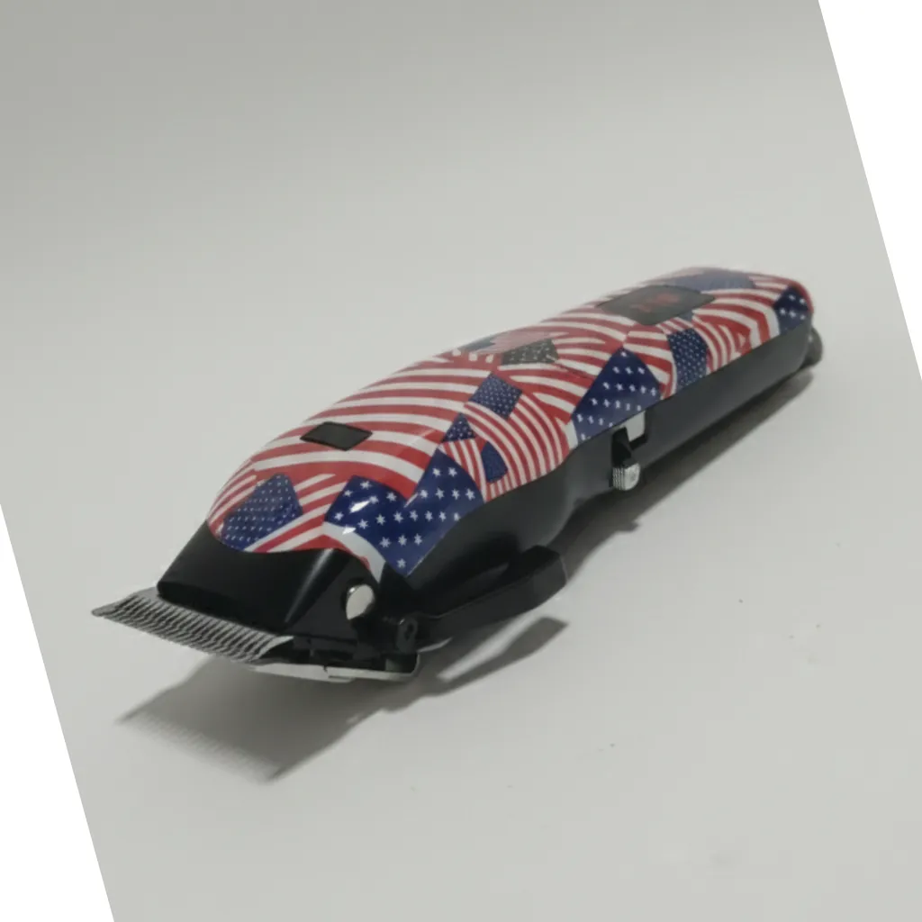 The clipper features a unique USA flag design, giving it a bold and premium appearance. Its ergonomic grip ensures comfortable handling, while the rechargeable cordless operation provides freedom of movement without tangled wires.