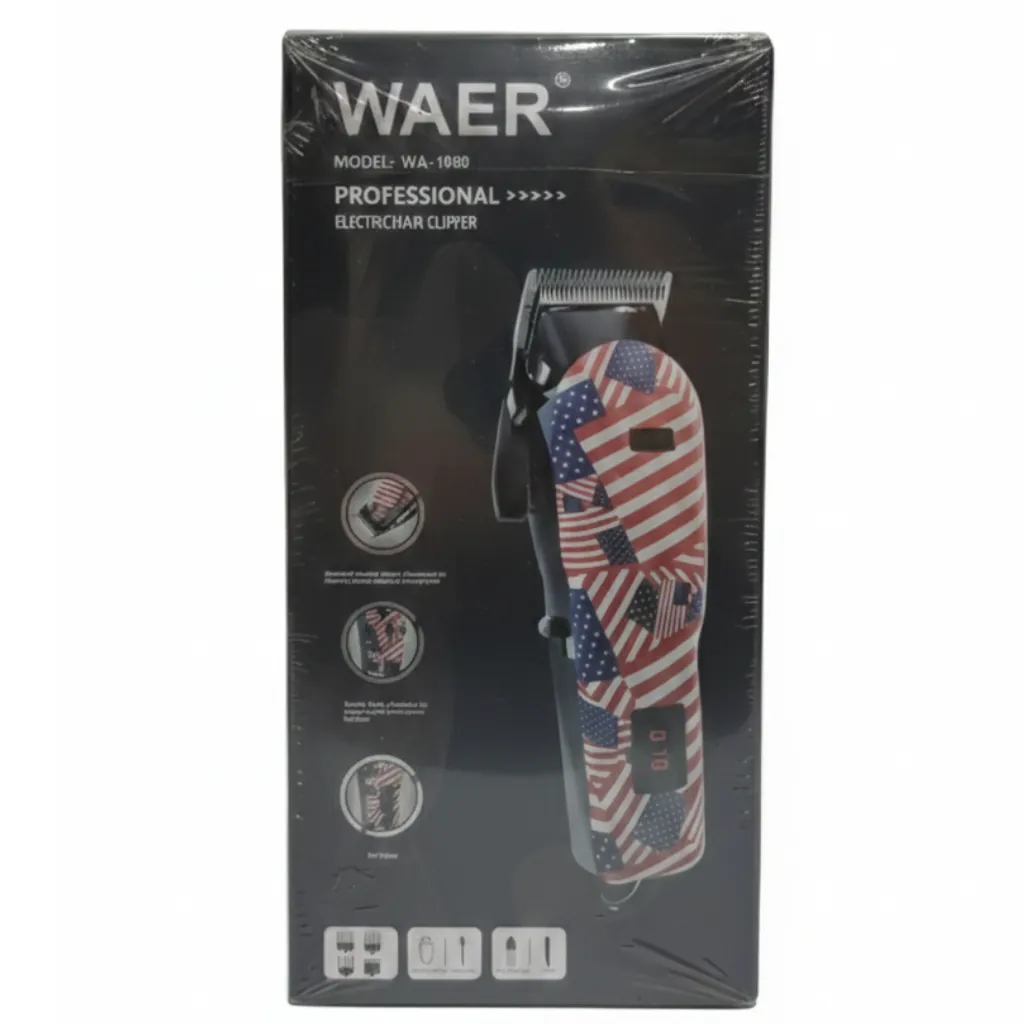 The WAER WA-1080 Professional Hair Clipper & Beard Trimmer is a powerful and stylish grooming tool designed for men who want precision, durability, and performance. This cordless electric hair cutting machine is equipped with high-quality stainless steel blades that ensure smooth, sharp, and snag-free trimming for hair, beard, and mustache.