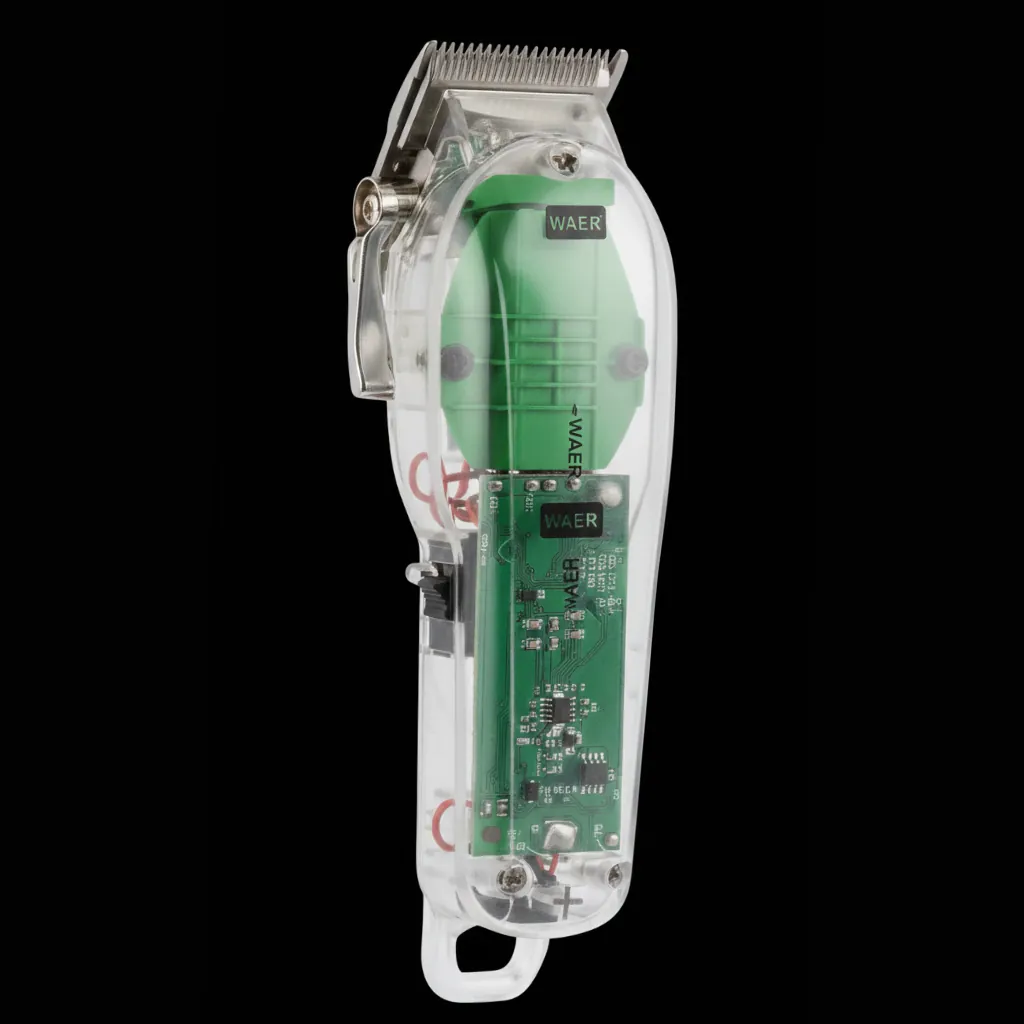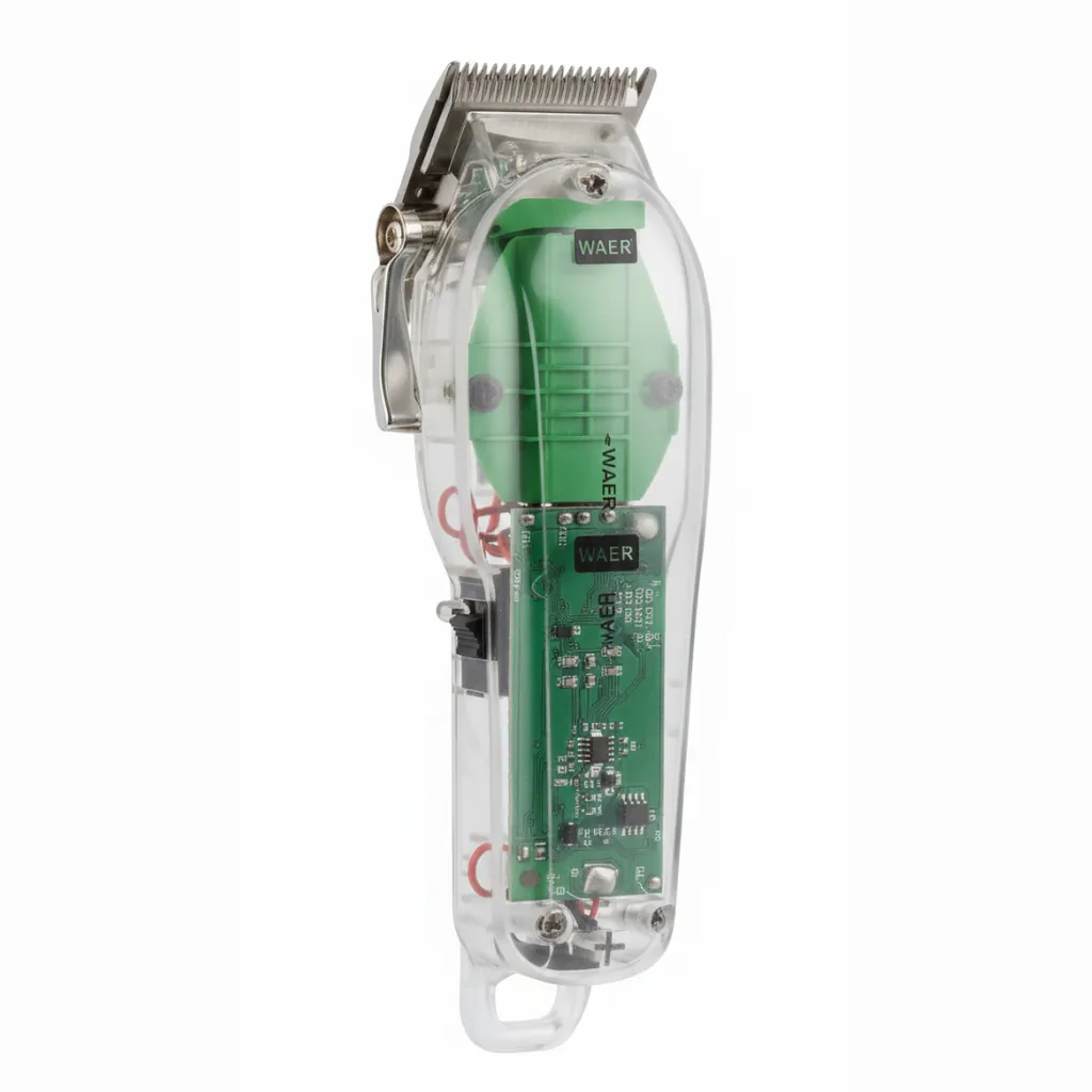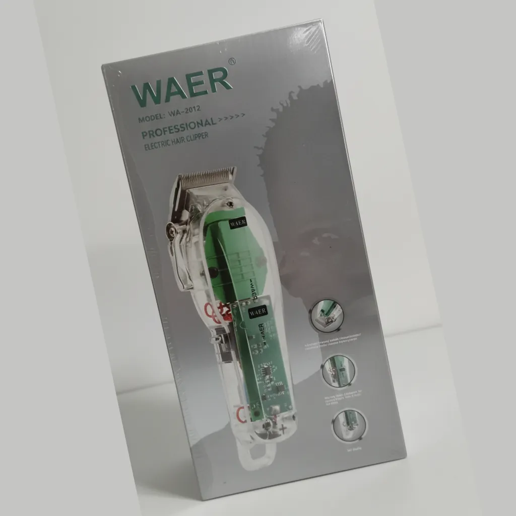 The WAER WA-2012 Professional Electric Hair Clipper is designed for powerful performance and modern style. Featuring a unique transparent body design, this clipper gives a premium and professional look while delivering strong cutting performance.