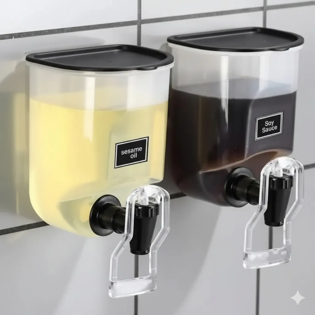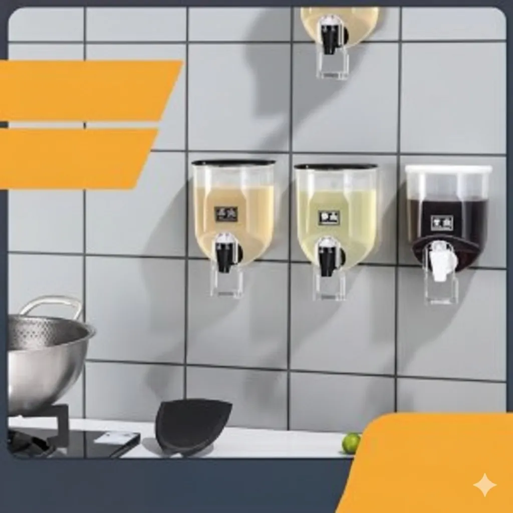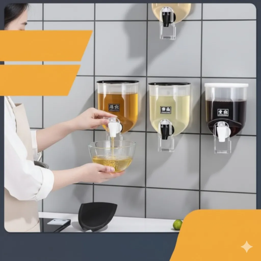 Streamline your kitchen counter and cooking process with the innovative Wall Mounted Oil and Liquid Food Dispenser. This space-saving solution is perfect for keeping your most-used cooking liquids like sesame oil, olive oil, vinegar, soy sauce, or even honey always within reach, without cluttering your valuable countertop space.