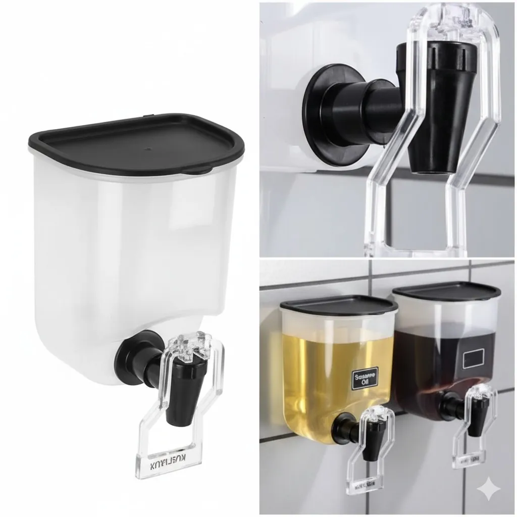 Designed for convenience, this dispenser features a secure wall-mounting mechanism that keeps it stable and accessible. The wide opening makes refilling incredibly easy and mess-free, while the integrated spigot allows for precise, drip-free dispensing directly into your pans, bowls, or measuring spoons. Made from durable, food-grade [Plastic/Acrylic] material, it ensures the freshness and purity of your liquids. The transparent design lets you easily monitor content levels, so you know exactly when it's time for a refill. Ideal for any modern kitchen looking for a blend of functionality, hygiene, and style.