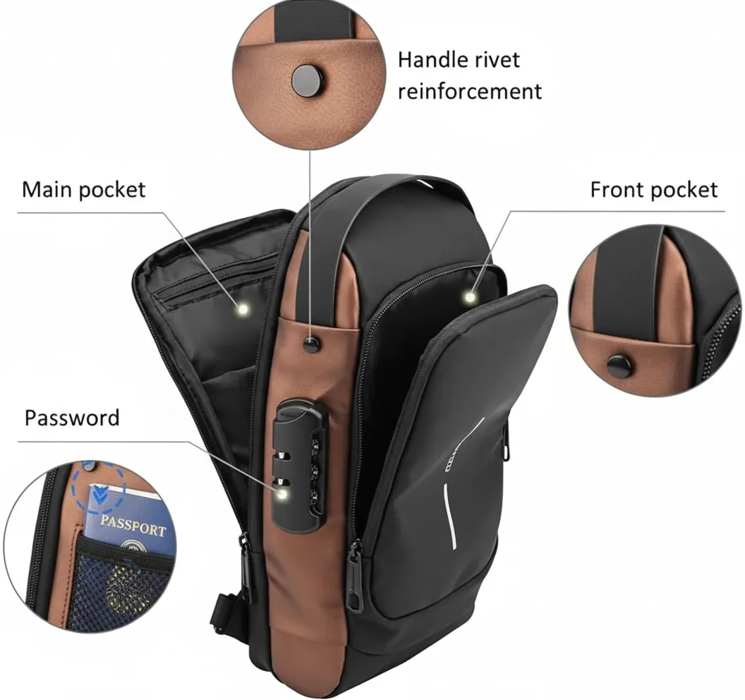 This waterproof motorcycle chest bag is designed for the needs of riders, offering secure and convenient storage for essentials. Constructed from durable, water-resistant materials, it protects your belongings from rain and splashes. 1 The integrated anti-theft password lock adds an extra layer of security. Its ergonomic design ensures comfortable wear while riding, and multiple compartments allow for organized storage of items like phones, wallets, and keys.