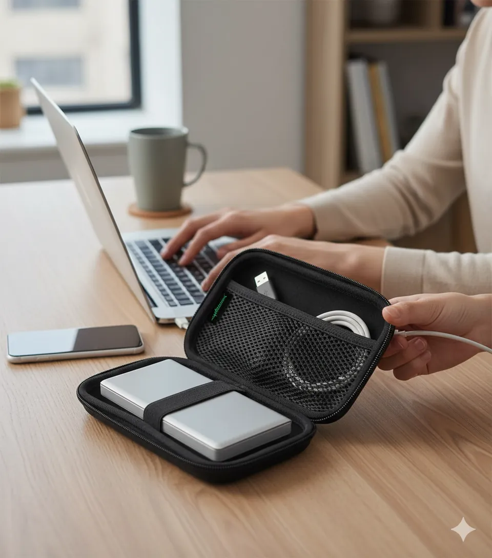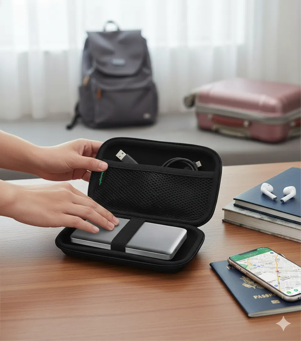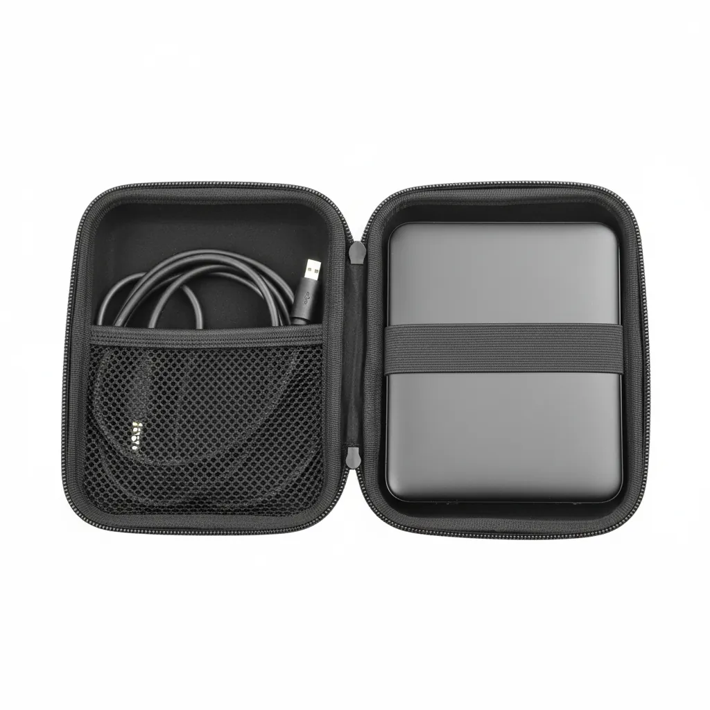 Safeguard your valuable data with the WD Hard Pouch External Drive Travel Carrying Case. Designed for Western Digital (WD) Portable Hard Drives and most 2.5-inch SSDs/HDDs, this pouch offers superior protection against bumps, scratches, and drops. It features a semi-hard, shockproof EVA shell and a soft inner lining to prevent damage. Inside, an elastic strap secures the drive, while a mesh pocket holds essential accessories like USB cables and flash drives. The compact and lightweight design makes it the perfect travel companion for professionals, students, and gamers.