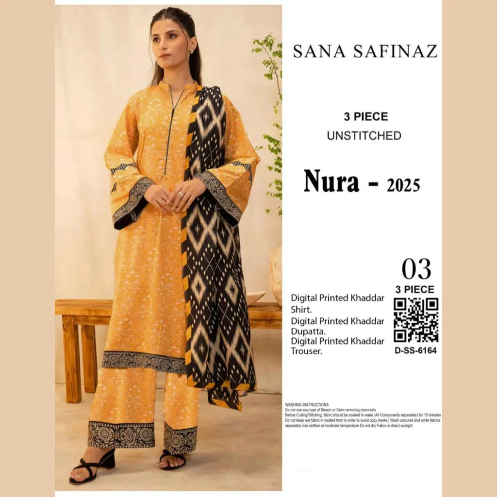 Discover the perfect blend of comfort and sophistication with Sana Safinaz Khaddar Printed Unstitched 3 Piece Collection. Designed with premium khaddar fabric, this outfit ensures warmth and style during the winter season. The beautifully printed shirt, matching trouser, and coordinating dupatta make it a versatile choice for casual gatherings and everyday elegance. A timeless addition to your seasonal wardrobe.