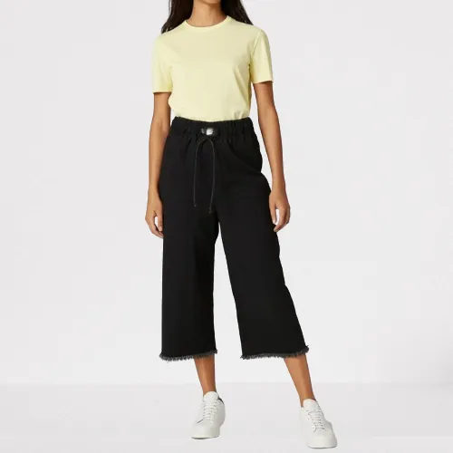 Women's Black Wide-Leg Denim Jeans | High-Waist Baggy Trousers with Raw Hem.Introducing our latest addition to your denim collection: the Black Wide-Leg Baggy Jeans. Crafted from comfortable black denim, these trousers offer a relaxed and stylish fit perfect for everyday wear. The high-waist design, combined with an elasticated waistband and adjustable drawstring, ensures a comfortable and customizable fit. The trendy wide-leg silhouette and the raw-edge hem add a touch of modern edge to these versatile jeans. Pair them with your favorite tops and sneakers for an effortlessly cool look.