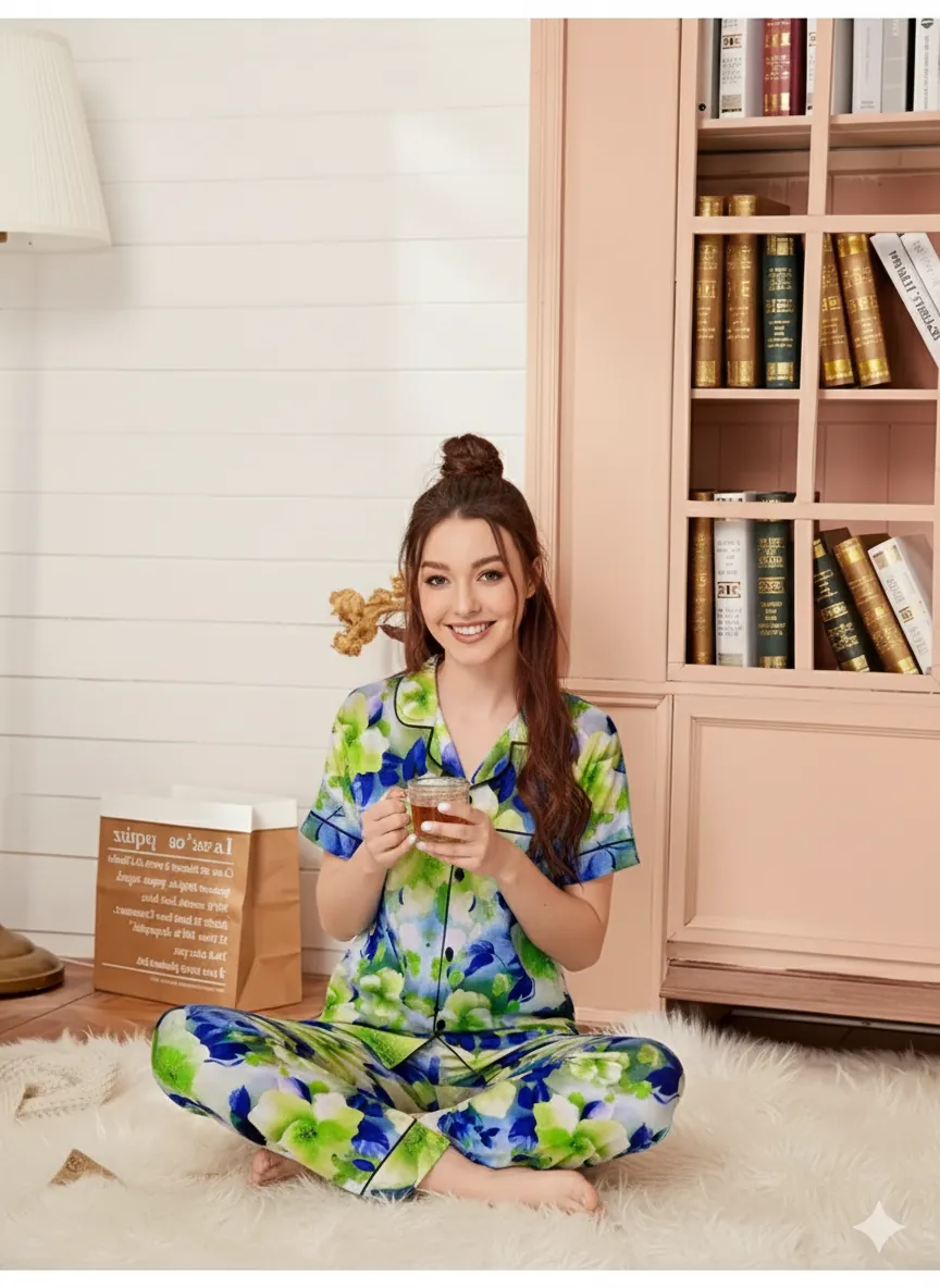 Whether you’re unwinding at home or lounging on a weekend morning, this floral set combines vibrant aesthetics with everyday comfort.
