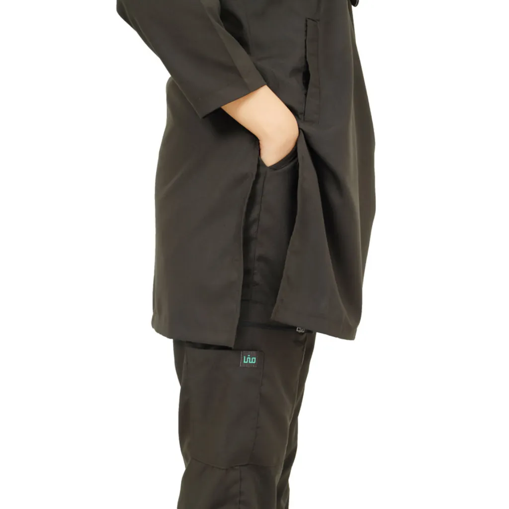 With full sleeves, it provides enhanced coverage and protection, while the tailored fit maintains ease of movement and a flattering silhouette. Two side pockets offer quick access to your daily medical tools and accessories without interrupting your workflow.
