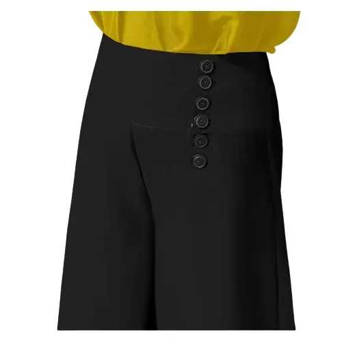 Make a timeless fashion statement with our Grip Bell Bottom Palazzo trousers in classic black. These beautifully stitched wide-leg pants are crafted from premium Grip fabric, known for its soft texture, comfortable stretch, and elegant drape. The bell-bottom style and high-waisted design create a flattering silhouette that elongates the legs and adds a touch of modern chic to your look. The versatile black color and stylish button detailing on the waist make these pants a perfect foundation for countless outfits. They are a standard size, with a length of 43 inches, a relaxed waist of 28 inches that stretches to 34 inches, and a generous bottom opening of 31 inches. As a ready-to-wear piece, you can effortlessly pair them with a casual top for a day out or a dressy blouse for a special occasion.