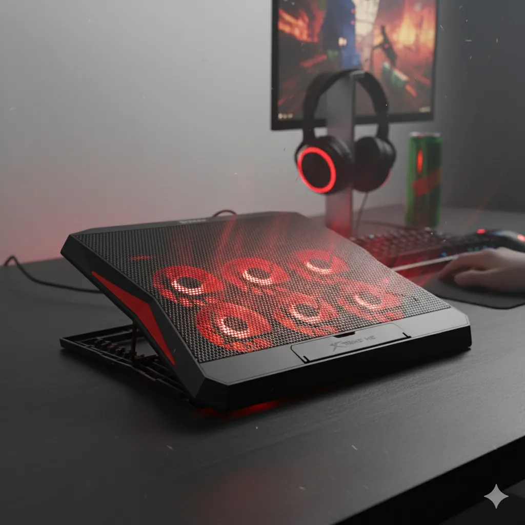 The Xtrike Me Laptop Cooling Pad is a high-performance cooling stand designed to prevent your laptop from overheating during intense gaming sessions or heavy workloads. It features a durable metal mesh surface that ensures optimal airflow, while multiple high-speed cooling fans continuously circulate cool air to keep your laptop at a safe operating temperature.