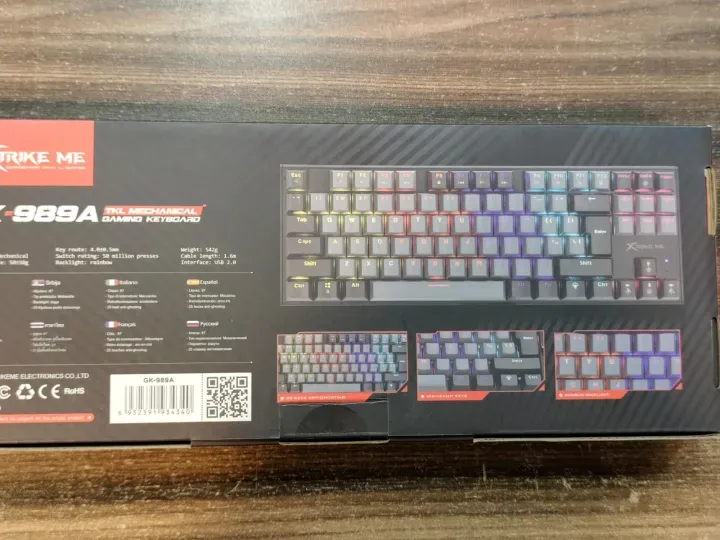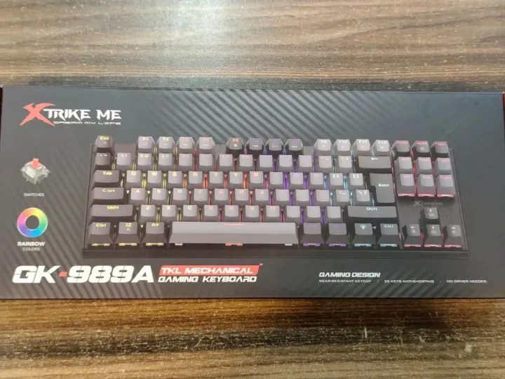 Unleash your gaming potential with the XTRIKE ME GK-989 A TKL Mechanical Gaming Keyboard. This tenkeyless (87-key) design frees up valuable desk space for wider mouse movements, a critical advantage in competitive gaming. At its core, the GK-989 A uses high-performance Red mechanical switches known for their smooth, linear actuation and fast response time, ideal for quick, repetitive keystrokes. These switches are built to last with a life expectancy of up to 50 million keystrokes.