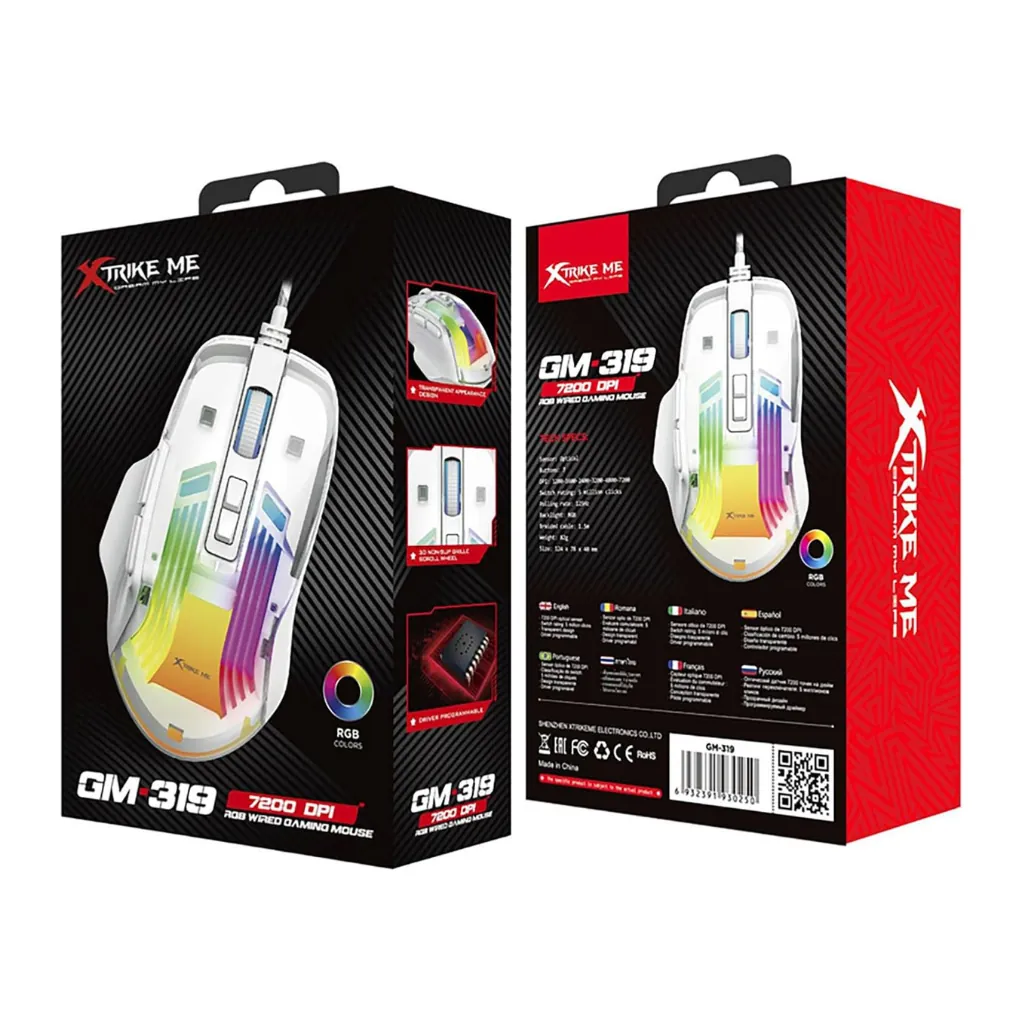 The XTRIKE ME GM-319 Wired Gaming Mouse in premium white is engineered for gamers who demand precision, responsiveness, and style. Featuring a high-precision optical sensor capable of up to 7200 DPI, this mouse accurately tracks every movement, giving you unmatched control whether you’re in an intense FPS match or navigating a complex MOBA battlefield. Its ergonomic design fits naturally in the hand, reducing strain during long hours of use, while the crisp white finish and subtle accents complement modern gaming setups. The durable braided USB cable ensures stable connectivity and long-term reliability, and plug-and-play operation means you can start gaming immediately — no driver installation required. With multiple programmable buttons, you’re able to assign macros, shortcuts and commands to give yourself a competitive advantage. The XTRIKE ME GM-319 blends high-performance specs, gamer-friendly comfort and striking aesthetics into one compelling package for both casual and serious gamers.