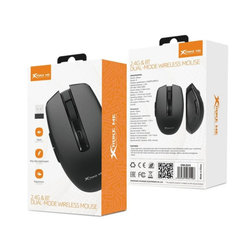 The XTRIKE ME GW-224 BK Wireless Mouse is a versatile, dual-mode wireless mouse crafted to deliver both freedom and precision for everyday computing tasks, casual gaming sessions and media navigation. With support for 2.4GHz wireless and Bluetooth 5.2 (plus legacy Bluetooth 3.0), it allows cross-device compatibility—from desktops and laptops to tablets and smart TVs—giving you flexibility to switch between devices seamlessly. The optical sensor supports adjustable sensitivity levels of 800, 1200 and 1600 DPI, enabling smooth and accurate cursor movement whether you’re browsing, working or playing. With six responsive buttons and durable switches rated for up to three million clicks, the GW-224 is built for consistent long-term use and dependable performance.