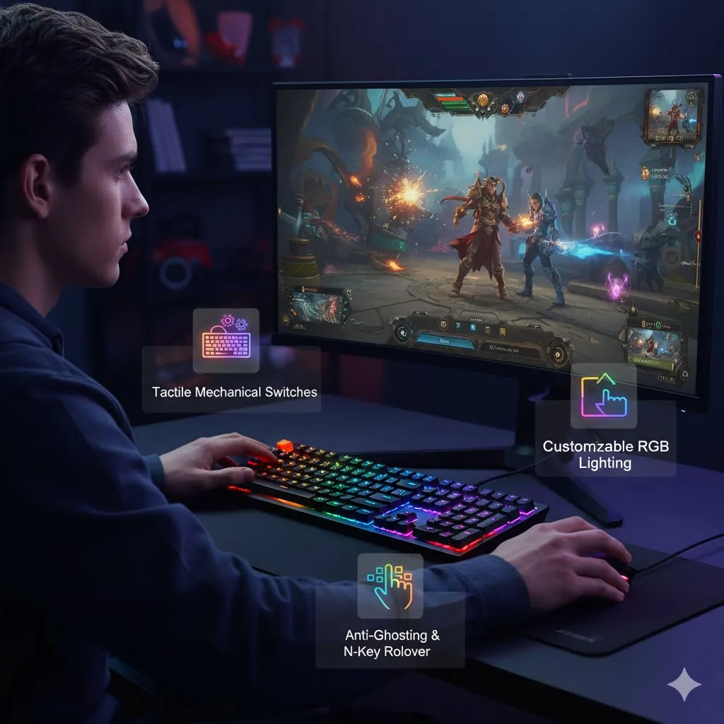 Elevate your desktop setup with the XTRIKE ME KB-512 BK Wired Keyboard. This full-sized, 108-key keyboard is engineered for users who desire the tactile feedback of a mechanical keyboard but prefer a quieter typing experience. It achieves this through specialized mechanical-feel membrane switches with a mute switch feature. Built for endurance, the keys are rated for an impressive 10 million keystrokes, ensuring long-lasting performance for intense gaming sessions and heavy daily office work.