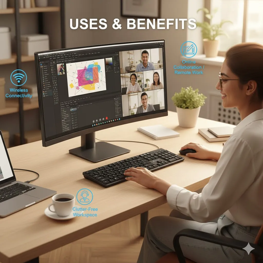 The full-size keyboard features quiet membrane keys and a slim-frame design for comfortable, low-noise typing, making it perfect for office environments, libraries, or late-night work sessions. Built for durability, the keys are rated for a 10 million-click lifespan.