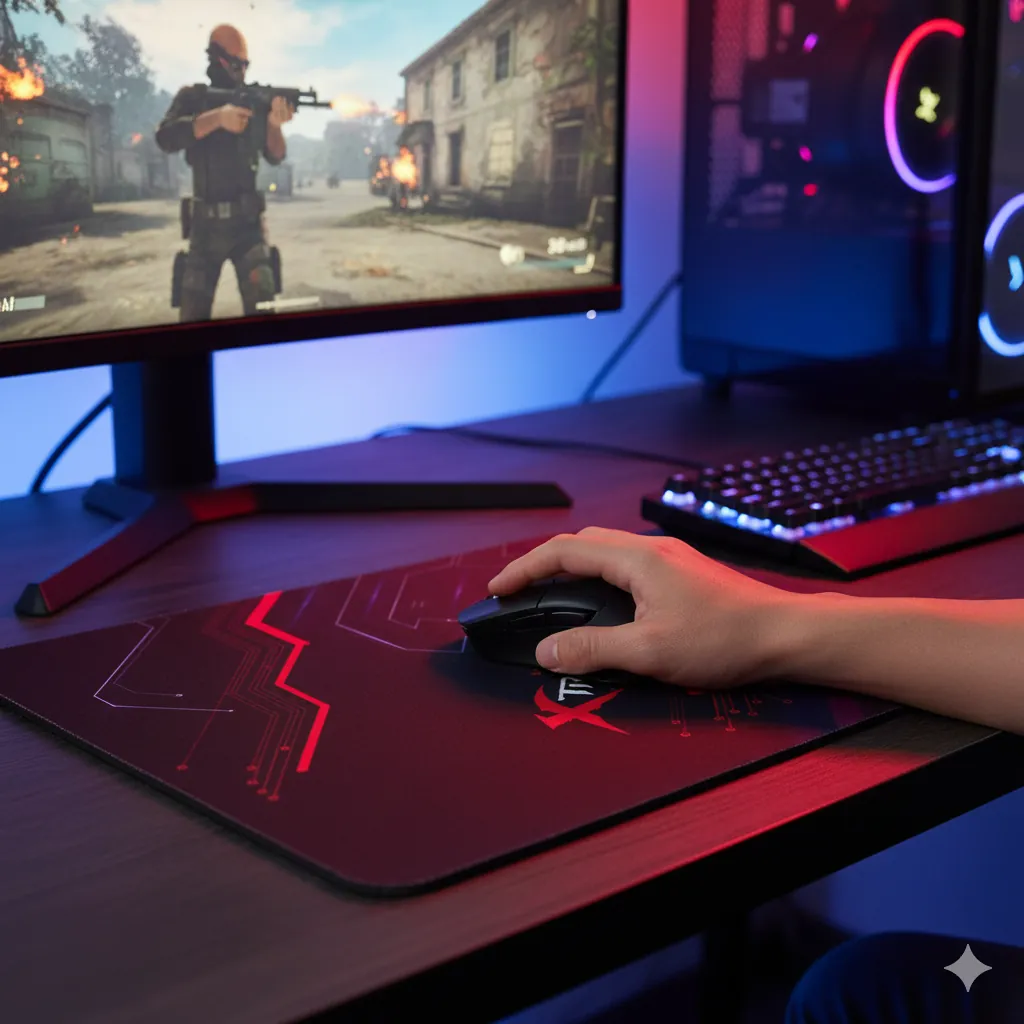 Boost your gaming performance with the XTRIKE ME MP-005, a professional-grade gaming mousepad. Engineered with a micro-woven fabric surface, this pad delivers the perfect balance between rapid mouse movement (Speed) and pinpoint accuracy (Control). The striking black and red design with a circuit pattern adds a dynamic look to your battle station. Measuring at a versatile Medium Size (320 x 270 x 2 mm), it provides ample space for low-DPI movement without cluttering your desk. A thick, high-density anti-slip rubber base ensures the pad remains firmly in place, even during the most intense gaming sessions. Durable edges resist fraying, promising long-lasting use. Ideal for FPS, MOBA, and RTS players seeking a reliable and stylish edge.
