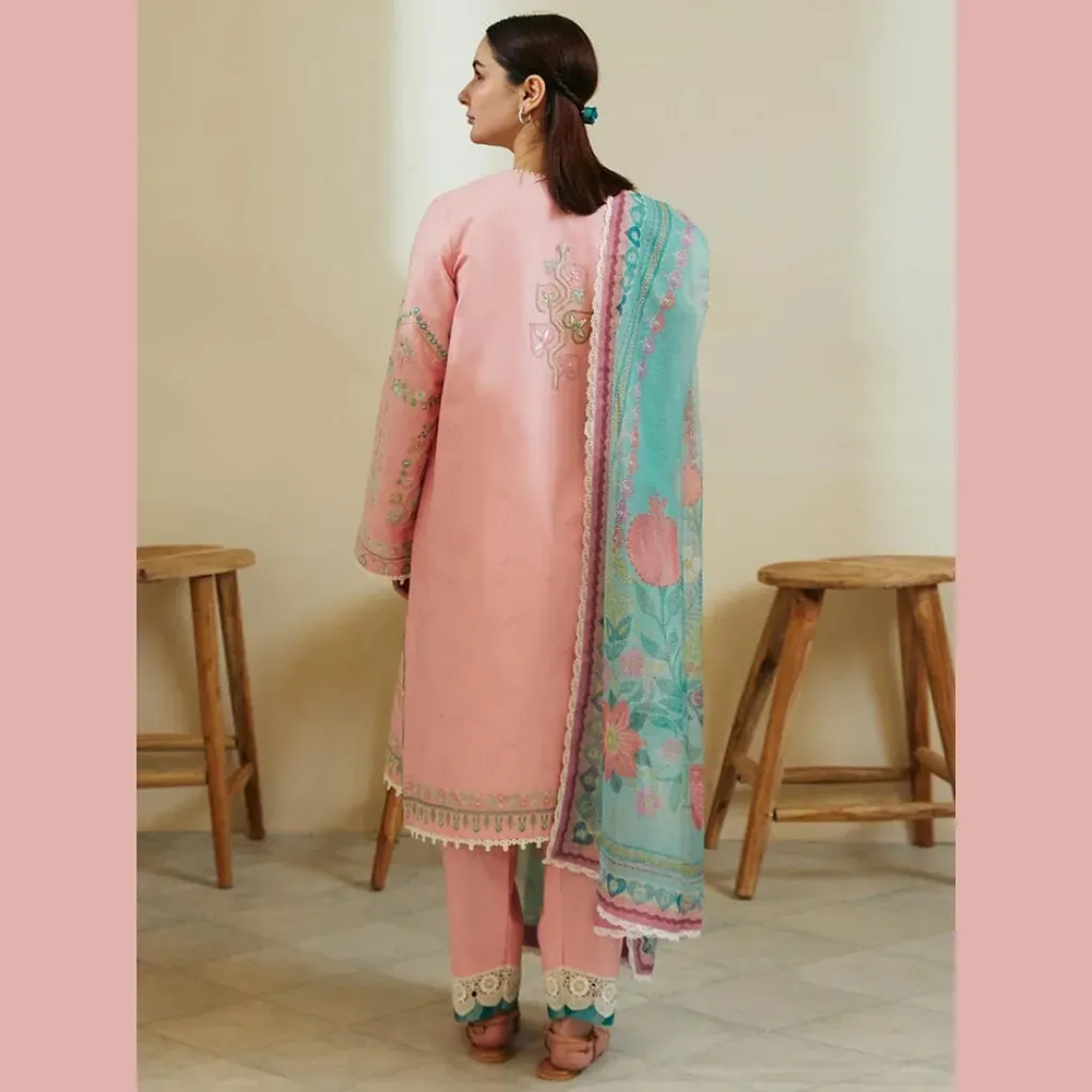 Step into timeless elegance with the ZARA SHAHJAHAN Luxury Lawn Embroidered 3PC Suit, a stunning piece from the Summer Collection 2025. Designed for the modern woman who values both tradition and style, this unstitched outfit is crafted from premium quality lawn fabric and adorned with delicate and detailed embroidery that exudes sophistication.