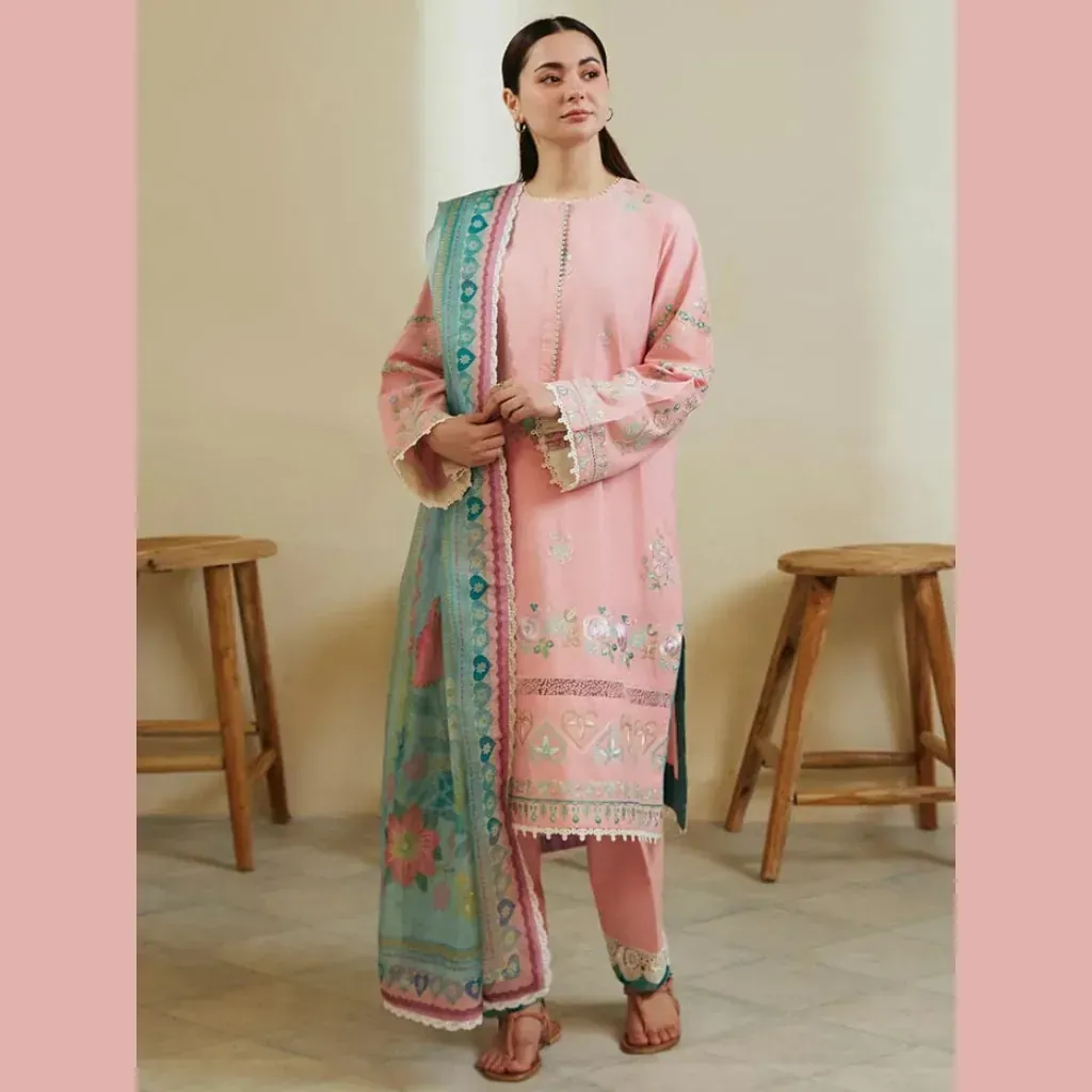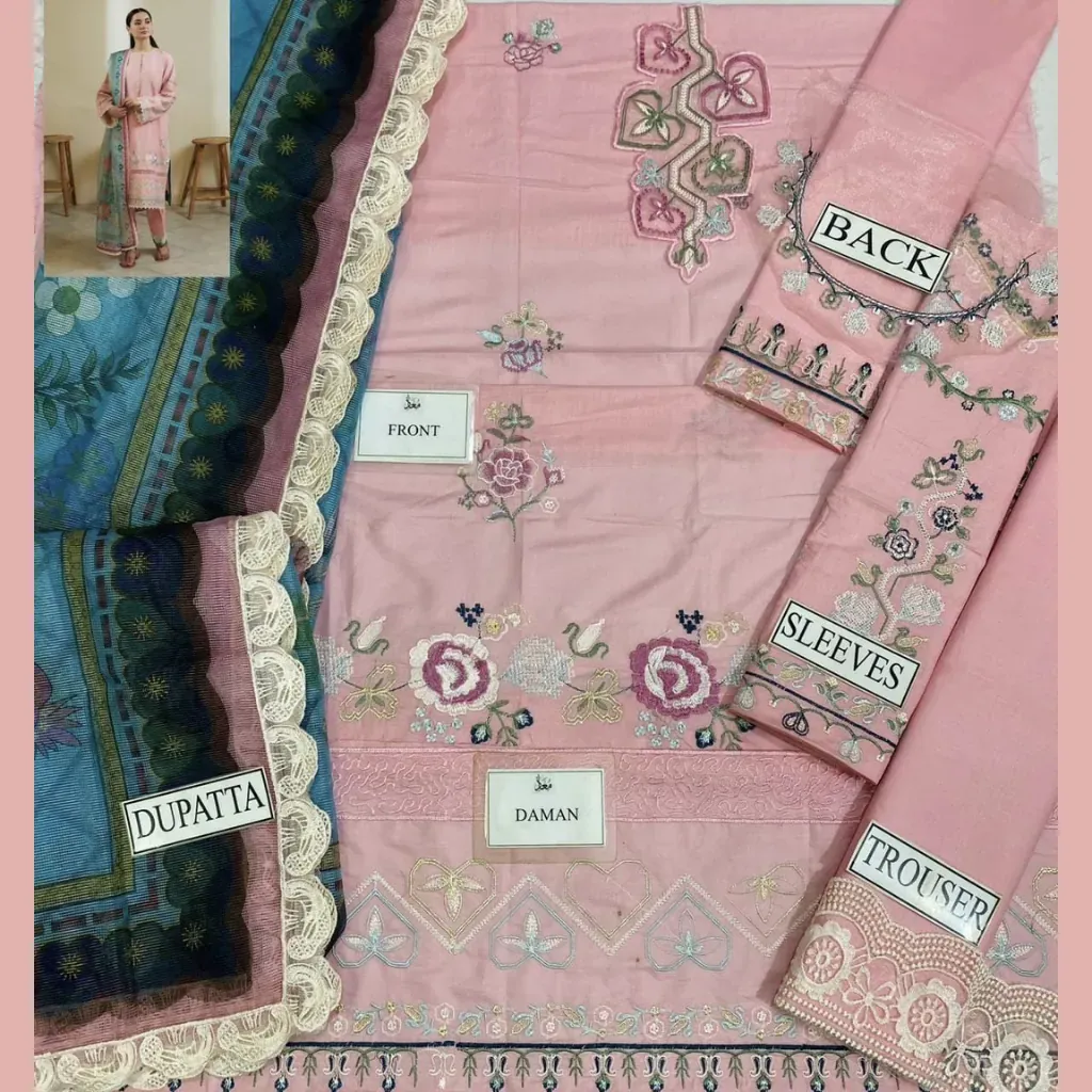 This 3-piece ensemble includes a finely embroidered front shirt, a plain or lightly detailed dyed trouser, and a coordinated dupatta – offering you a graceful yet breathable outfit perfect for the summer season. Whether you're dressing for Eid, a festive event, or a daytime gathering, this suit is designed to keep you stylish and comfortable throughout.