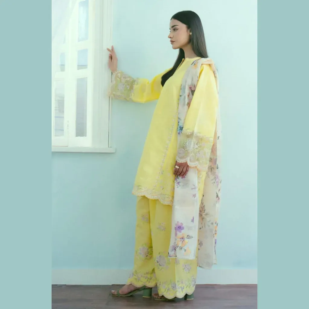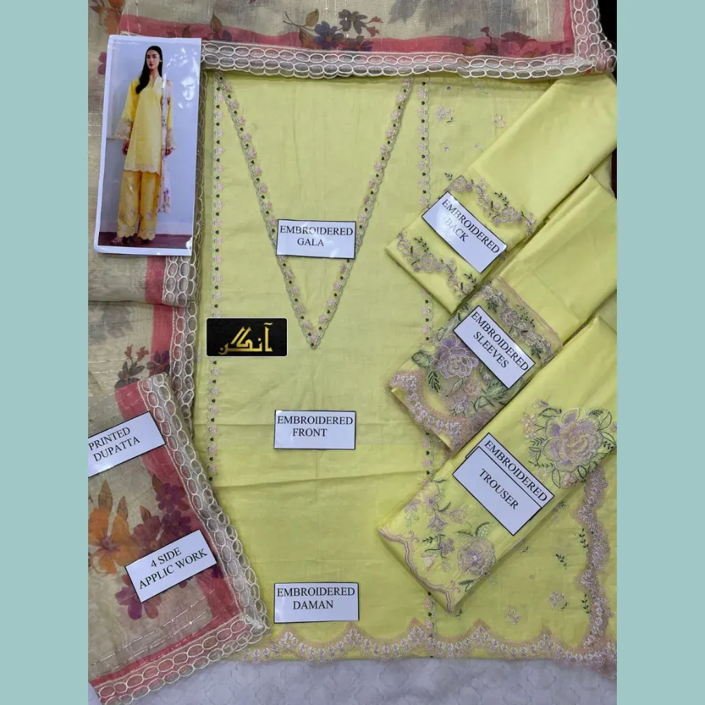 Whether you're attending a summer gathering, Eid celebration, or a casual day out, this unstitched suit offers endless possibilities to style it your way. Crafted with comfort in mind, the soft and breathable lawn cotton fabric is ideal for the hot summer months, while the detailed embroidery adds a luxurious touch to your look.